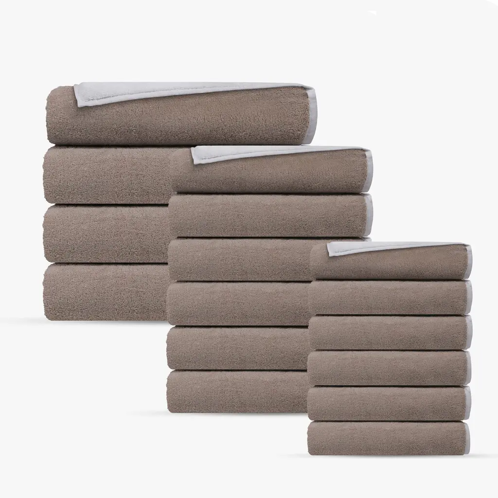 The Belmore 6 Piece Towel Set is made with a premium zero-twist cotton to create a luxurious hand-feel. Handcrafted in Portugal, these ultra-absorbent heavyweight towels combine plush softness with long lasting durability. The ribbed hem detail highlights the high pile fabrication, which gets softer with each wash. Available in an array of color options, the 6-piece set includes: 2 Bath Towels, 2 Hand Towels, and 2 Washcloths.