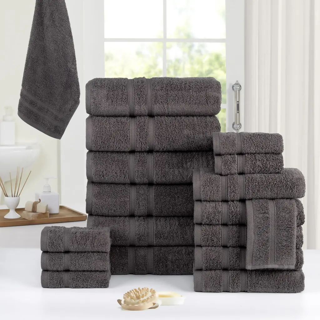 Bibb Home 18 Piece Zero Twist Egyptian Cotton Towel Set - N/a - Grey