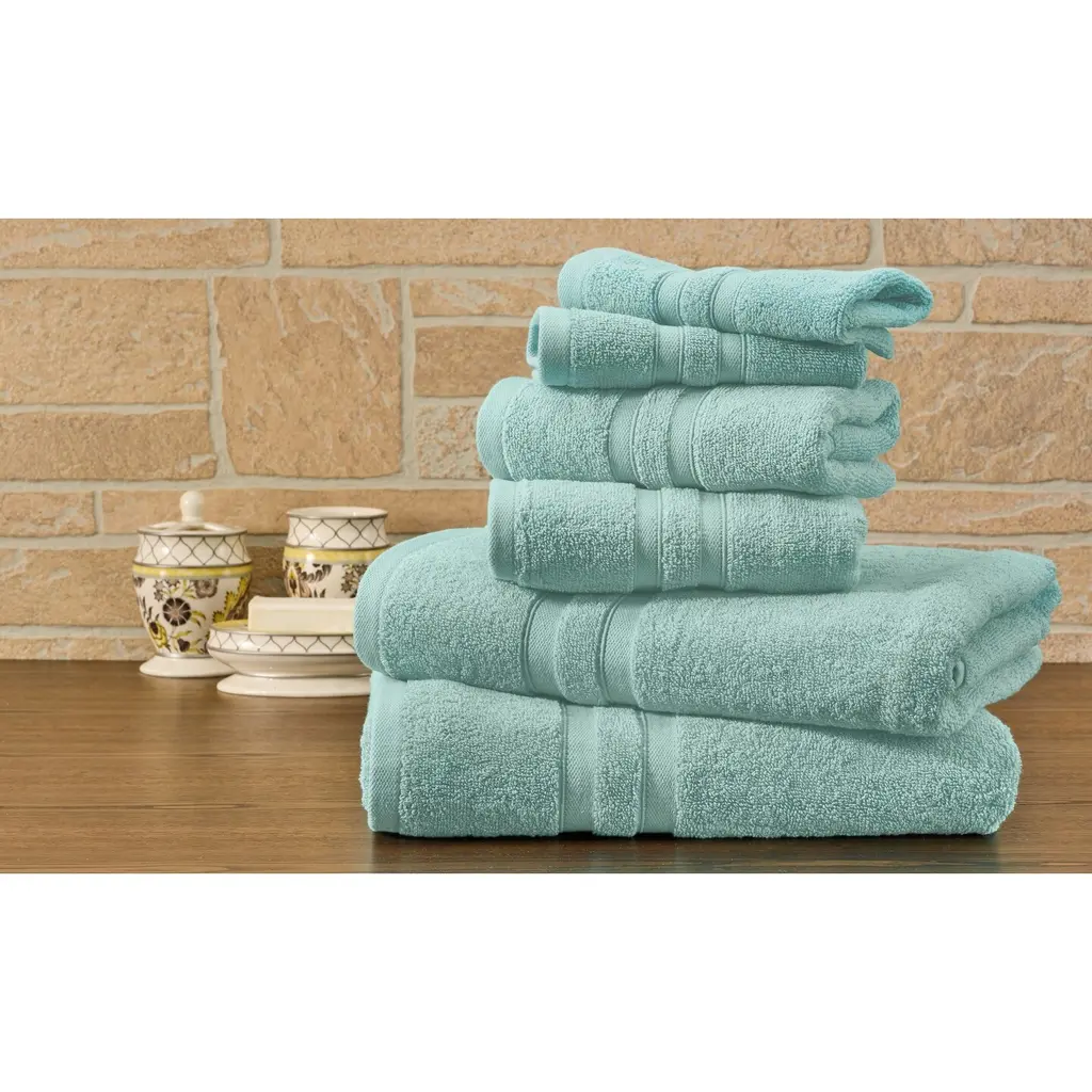 Bibb Home 6 Piece Egyptian Cotton Towel Set - Popcorn Aqua