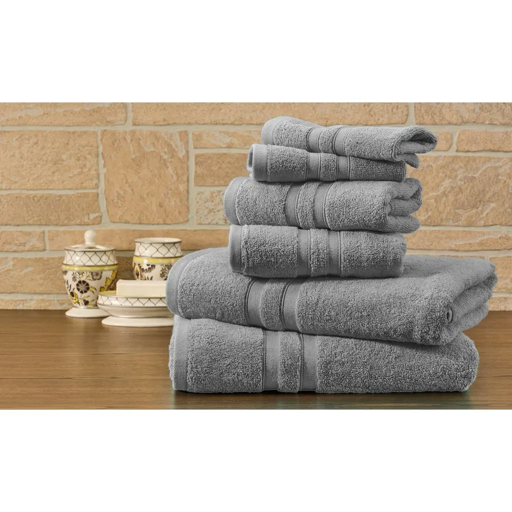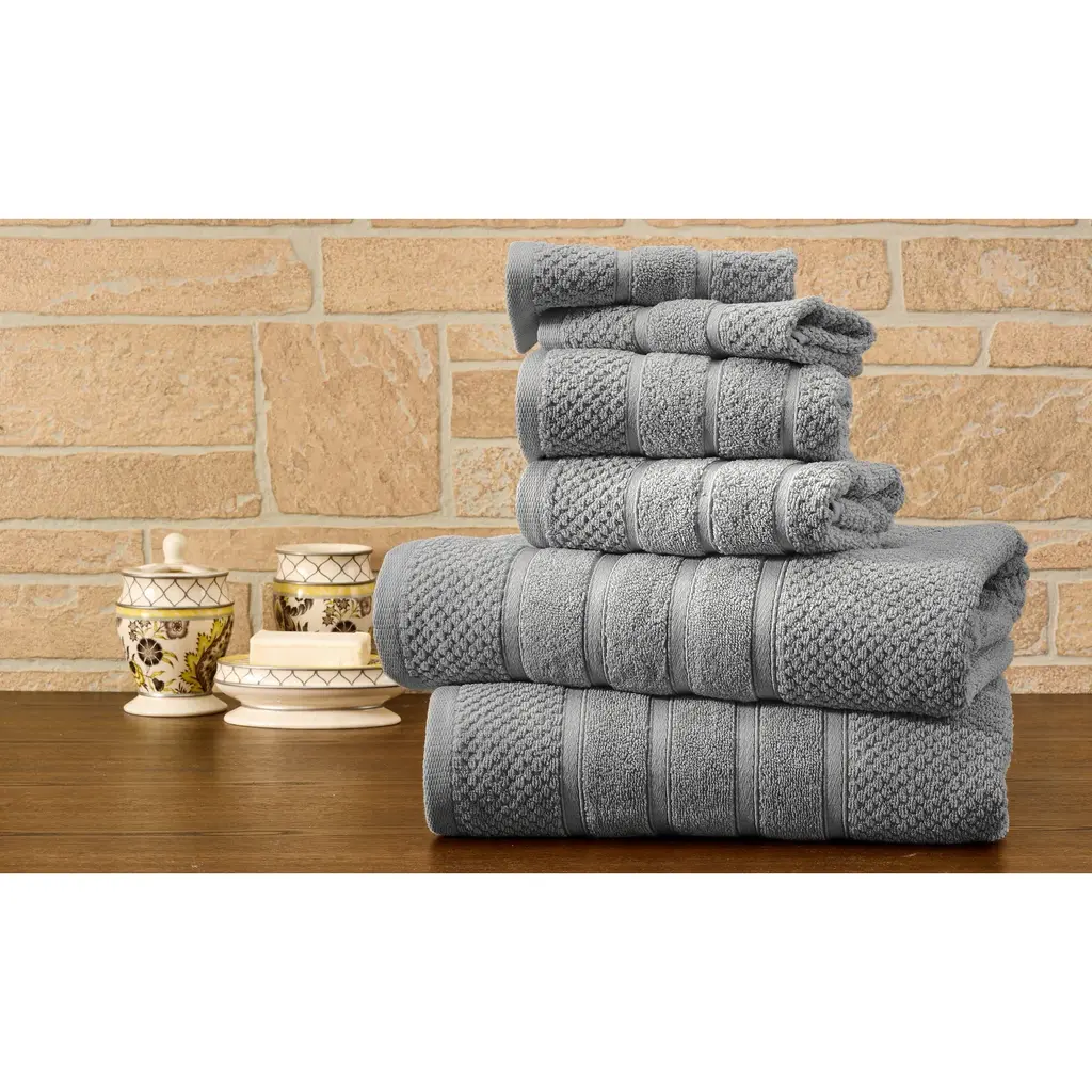 Bibb Home 6 Piece Egyptian Cotton Towel Set - Popcorn Grey