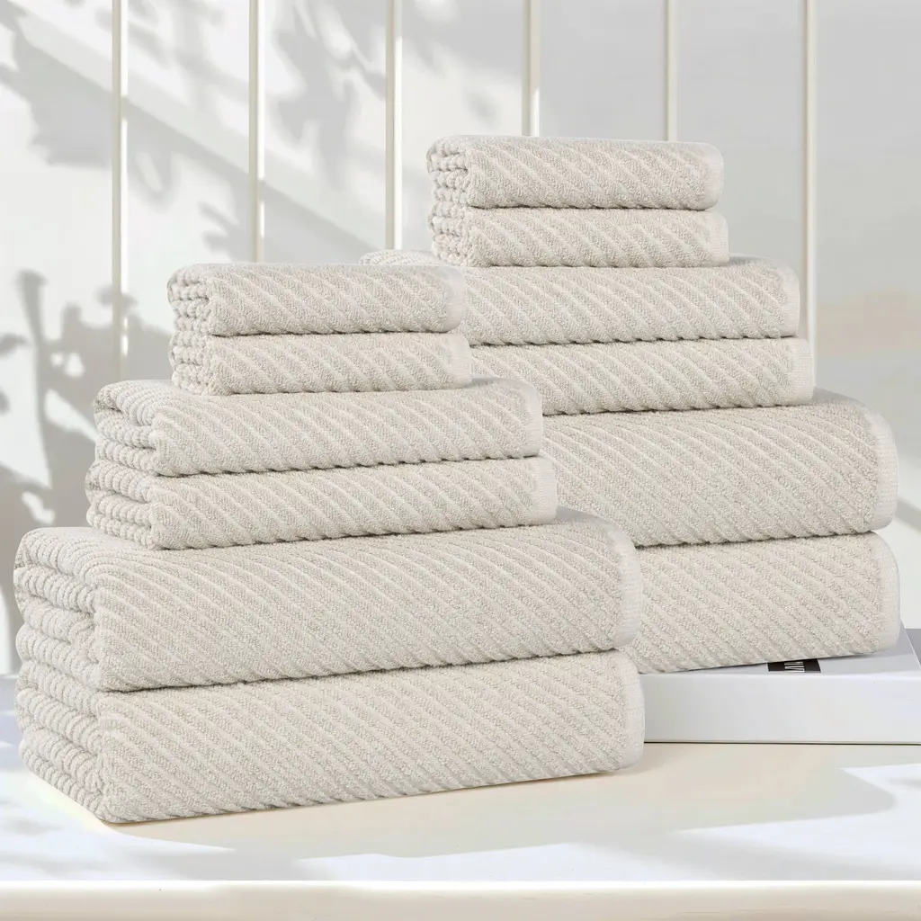 Blue Nile Mills Geneva Cotton Solid 12 Piece Towel Set - Ivory