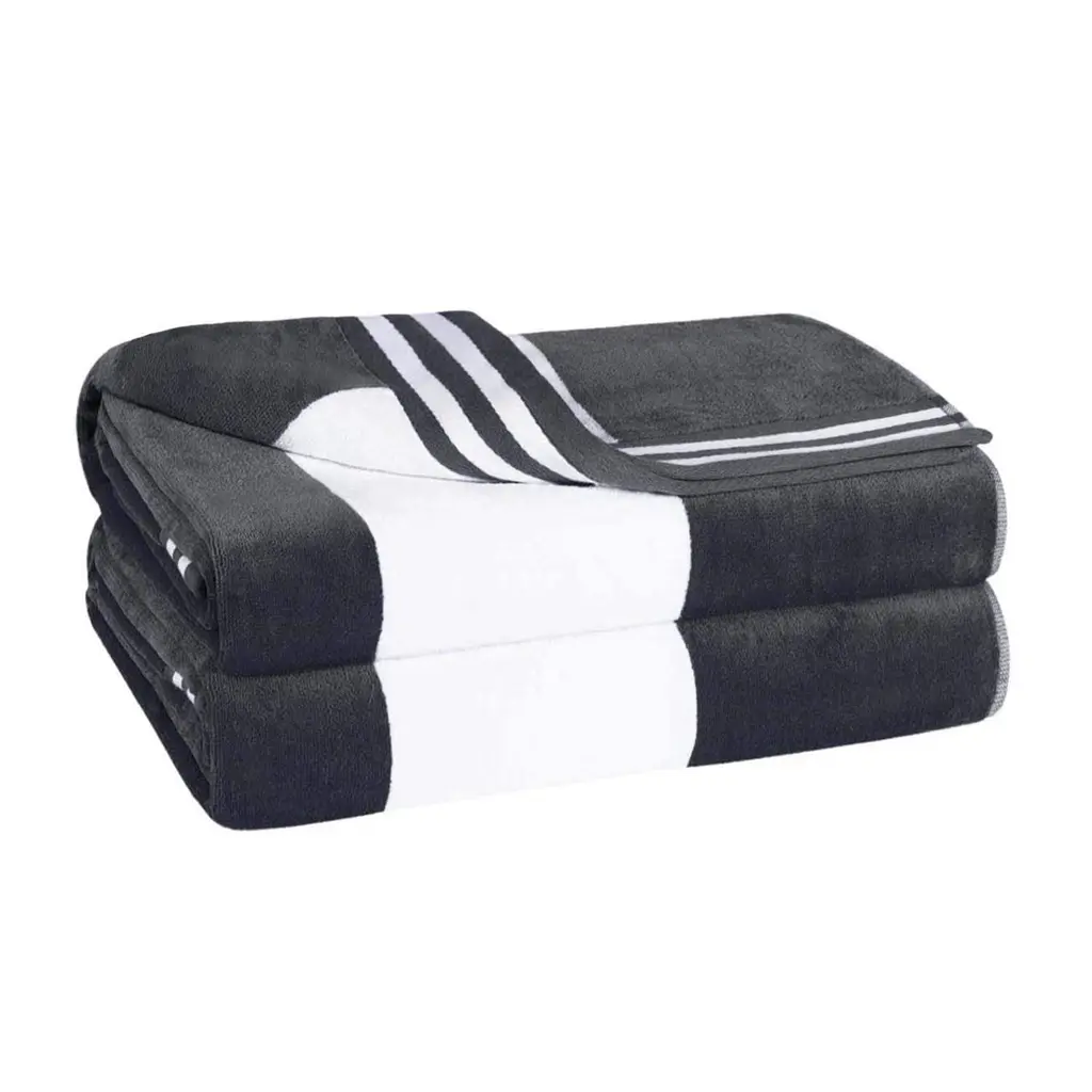 Cabana Stripe Oversized Cotton Beach 2 Piece Towel Set By Superior - Charcoal