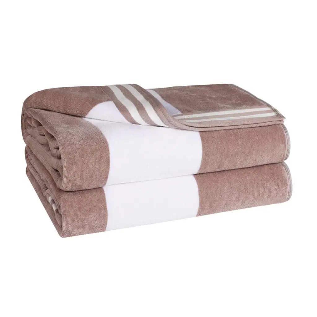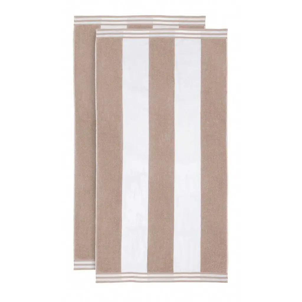 Cabana Stripe Oversized Cotton Beach 2 Piece Towel Set By Superior - Taupe
