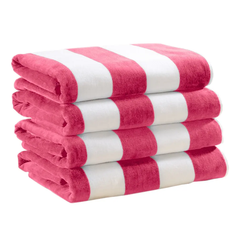 Cabana Stripe Oversized Cotton Beach 4 Piece Towel Set By Superior - Coral