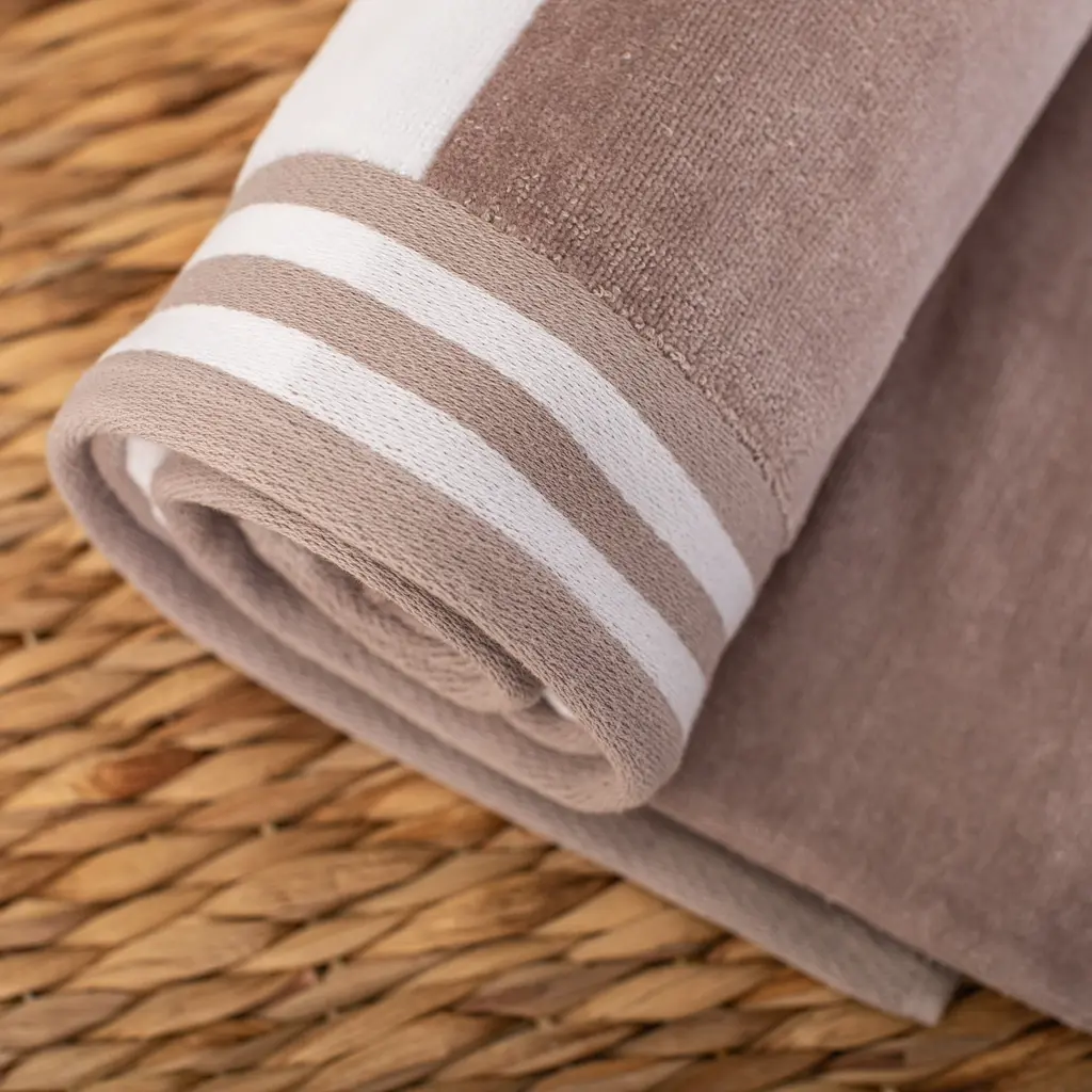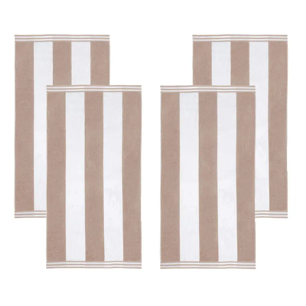 Cabana Stripe Oversized Cotton Beach 4 Piece Towel Set By Superior - Taupe