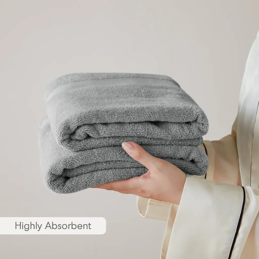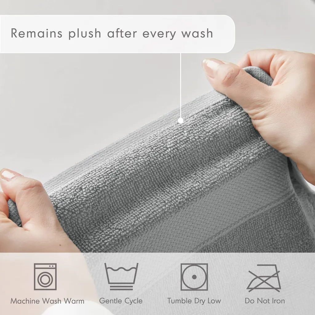 "Live in luxury with our soft 100% Turkish cotton 500 GSM towel set, balanced for both breathability and absorbency. Woven in durable, premium long-fiber threads for a more natural hand feel, these quick-dry terry towels are also designed to resist fading and minimize lint, providing spa-like comfort during any occasion. Revamp your everyday bathroom routine with the gift of our classic towel set including a locker loop, crafted to keep everything sparkling clean wherever you go. Additionally, this set holds an Oeko-Tex certification, ensuring our dedication to safety and gentle, non-irritating skin contact."Features:Dimensions: