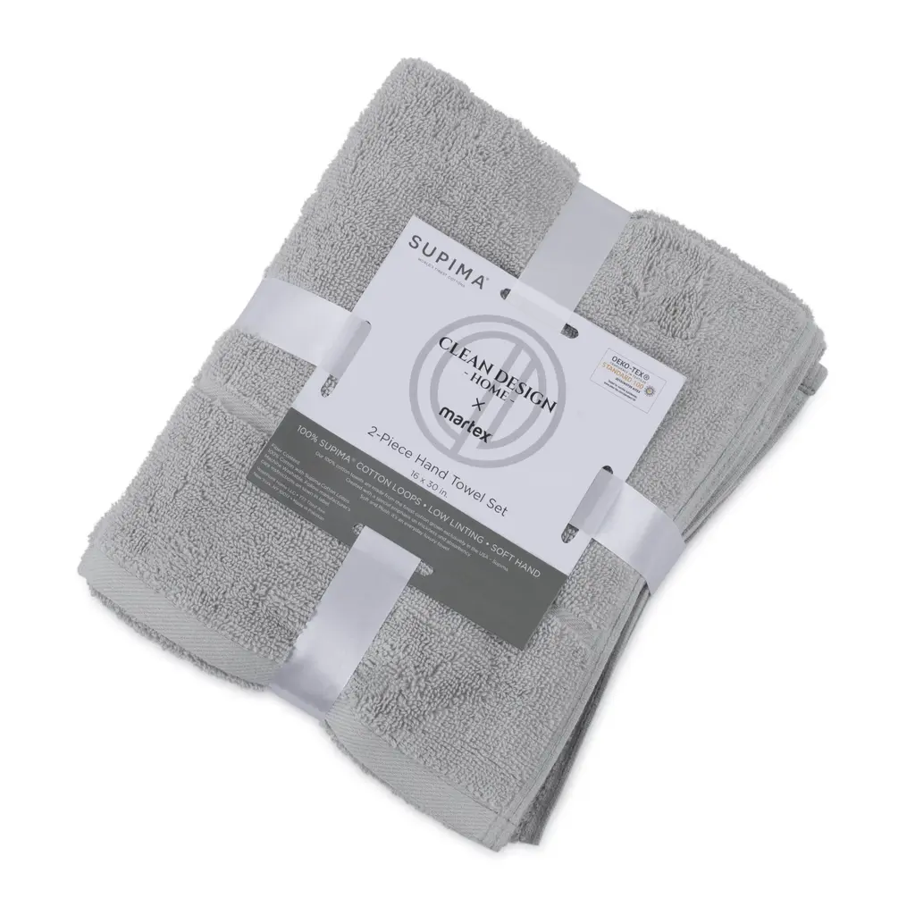 Clean Design Home X Martex Solid Supima 2-Pack Hand Towel Set - Hand Towel - Grey
