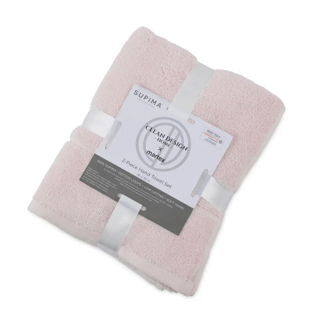 Clean Design Home X Martex Solid Supima 2-Pack Hand Towel Set - Hand Towel - Pink