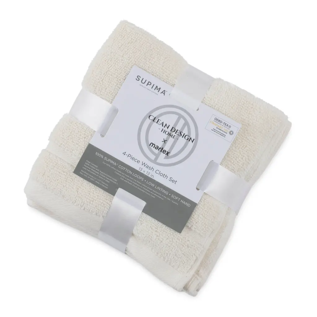 Clean Design Home X Martex Solid Supima 4-Pack Blue Wash Towel Set - Wash Towel - Off-White
