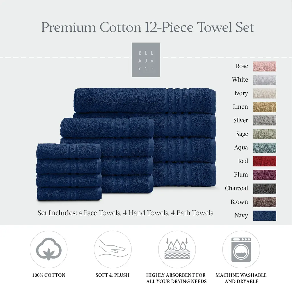 Cotton 12-Piece Face-Hand-Body Towel Set - Face, Hand & Bath - Navy