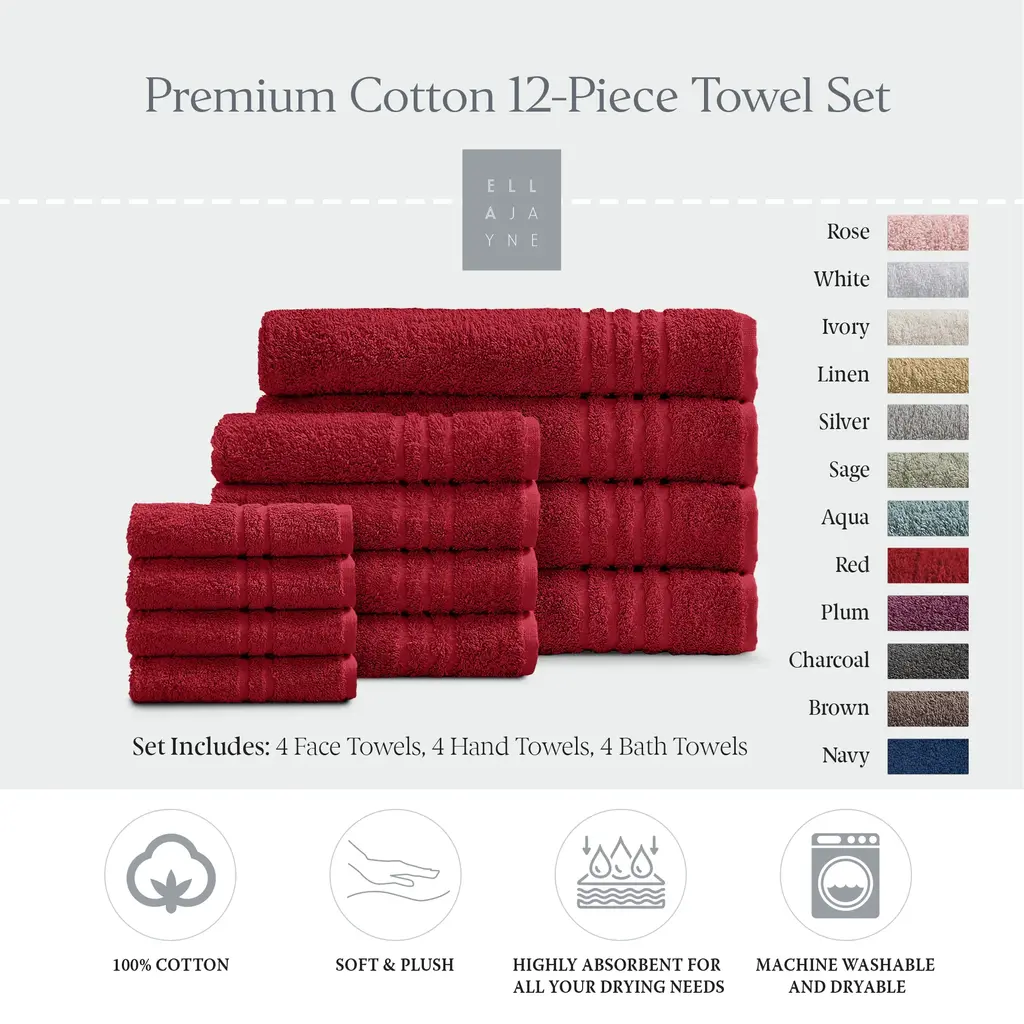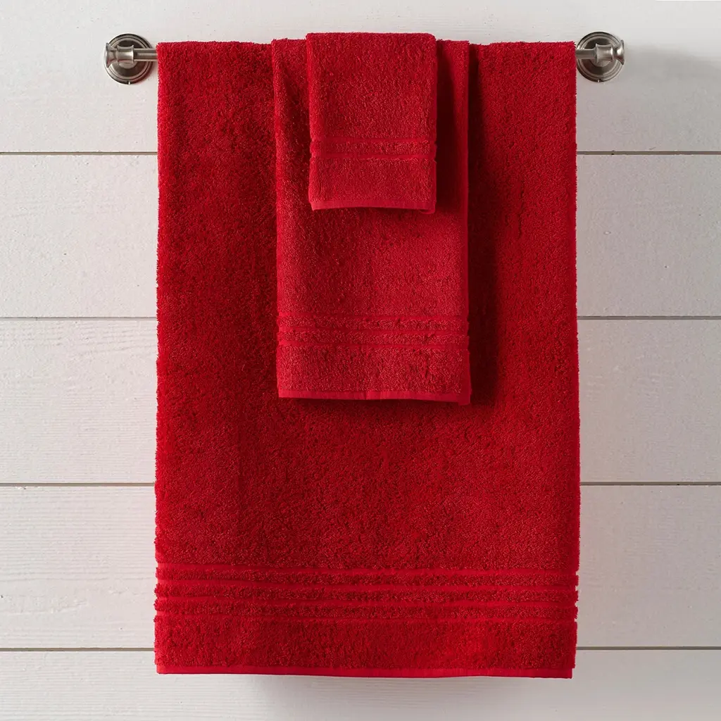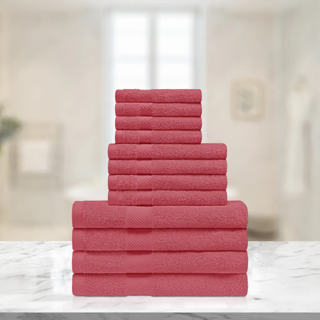Cotton 12-Piece Face-Hand-Body Towel Set - Face, Hand & Bath - Red