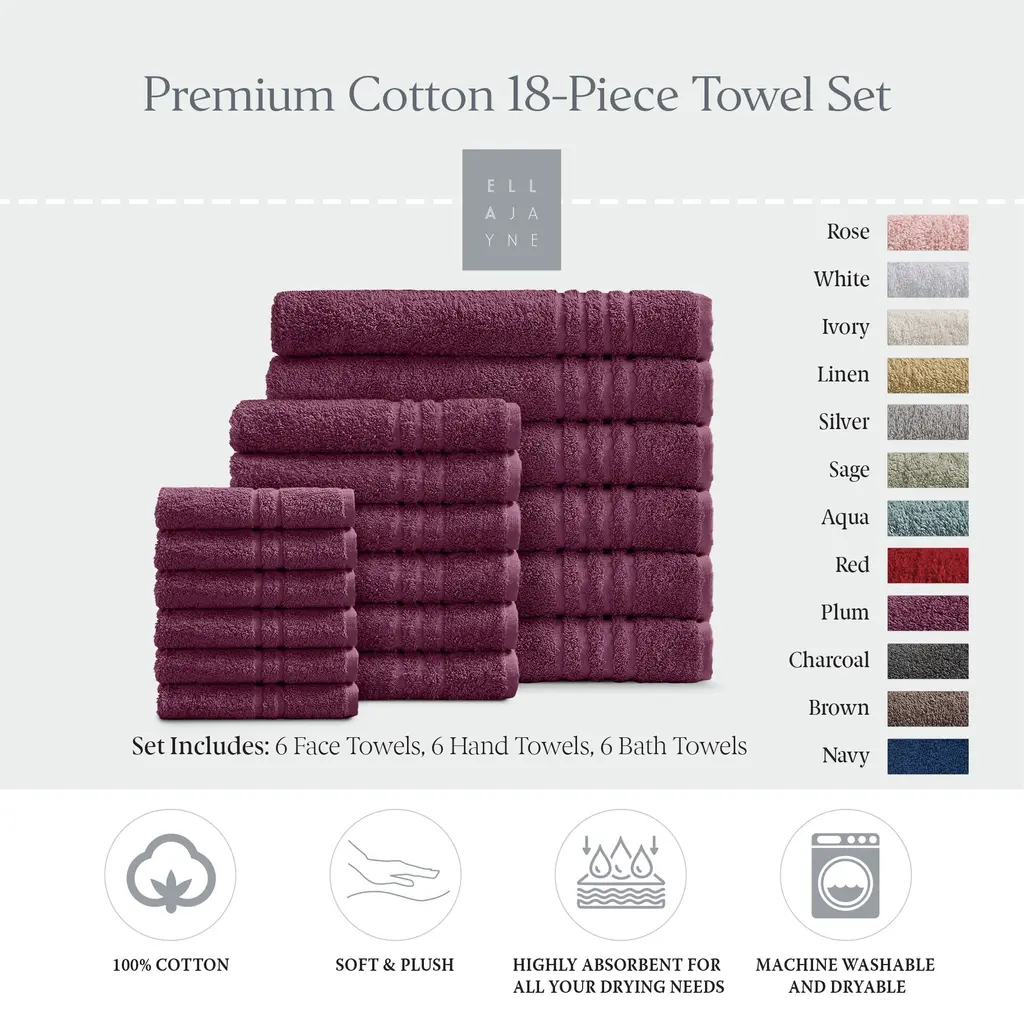 Cotton 18-Piece Face-Hand-Body Towel Set - Face, Hand & Bath - Plum