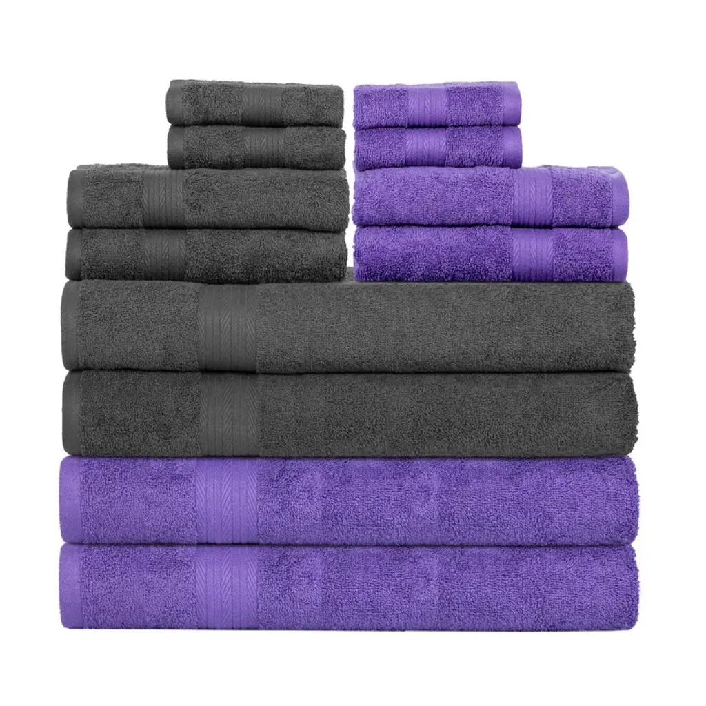 Cotton 600gsm Bathroom Towel Set 12 Pcs Assorted Color By Ample Decor - 4Bath 4Hand 4Wash - Beige - Purple