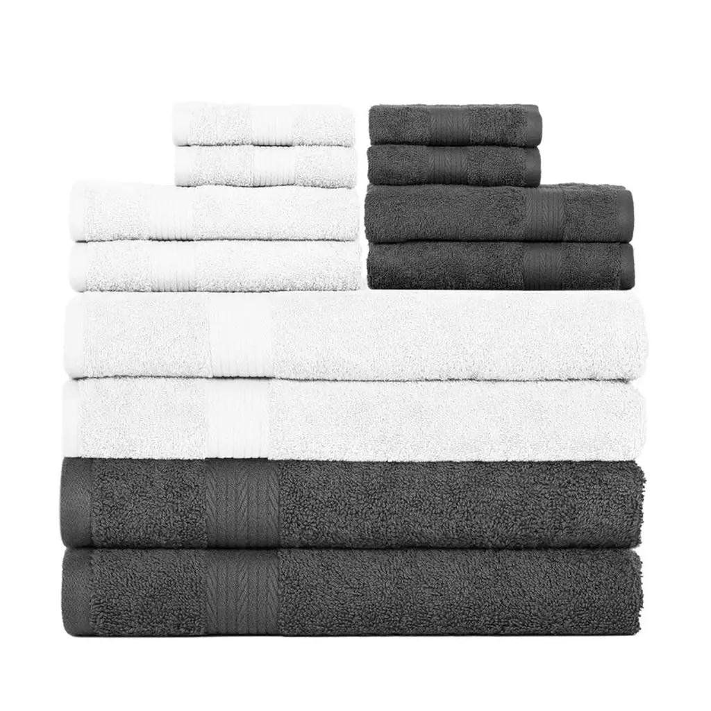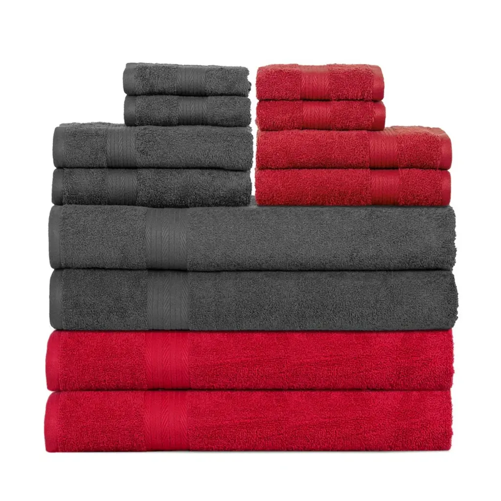 Cotton 600gsm Bathroom Towel Set 12 Pcs Assorted Color By Ample Decor - 4Bath 4Hand 4Wash - Gray - Purple