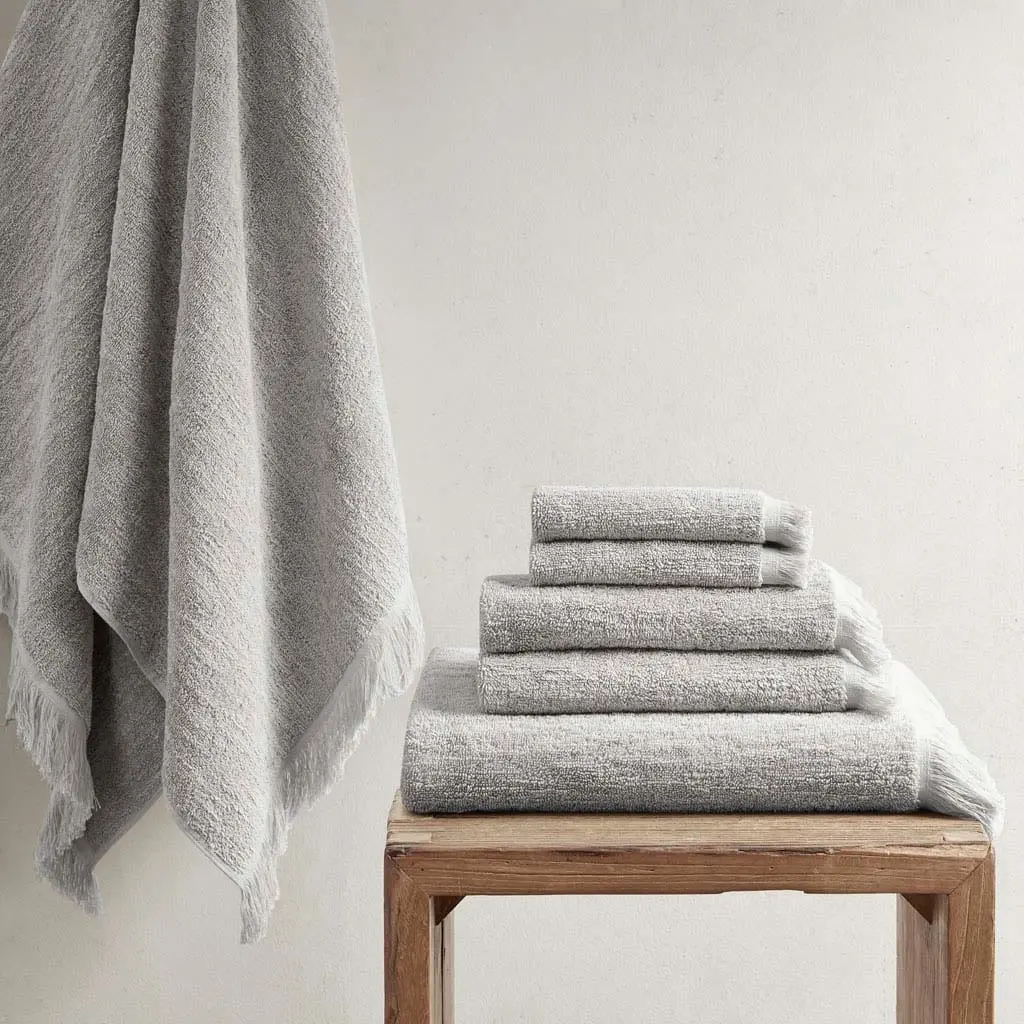 Cotton Dobby Slub 6 Piece Towel Set - Grey
