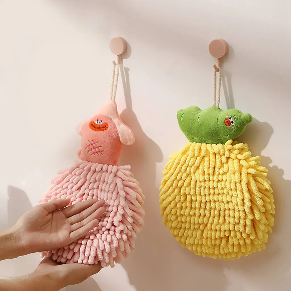 Cute Cartoon Fuzzy Ball Hand Towels, Soft And Quick Dry Decorative Hanging Hand Towel Set For Bathroom, Kitchen, Toilet - Orange - 2 Pack