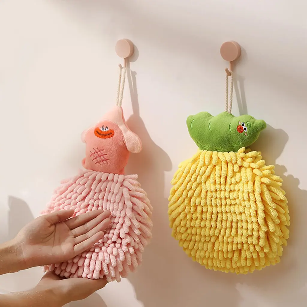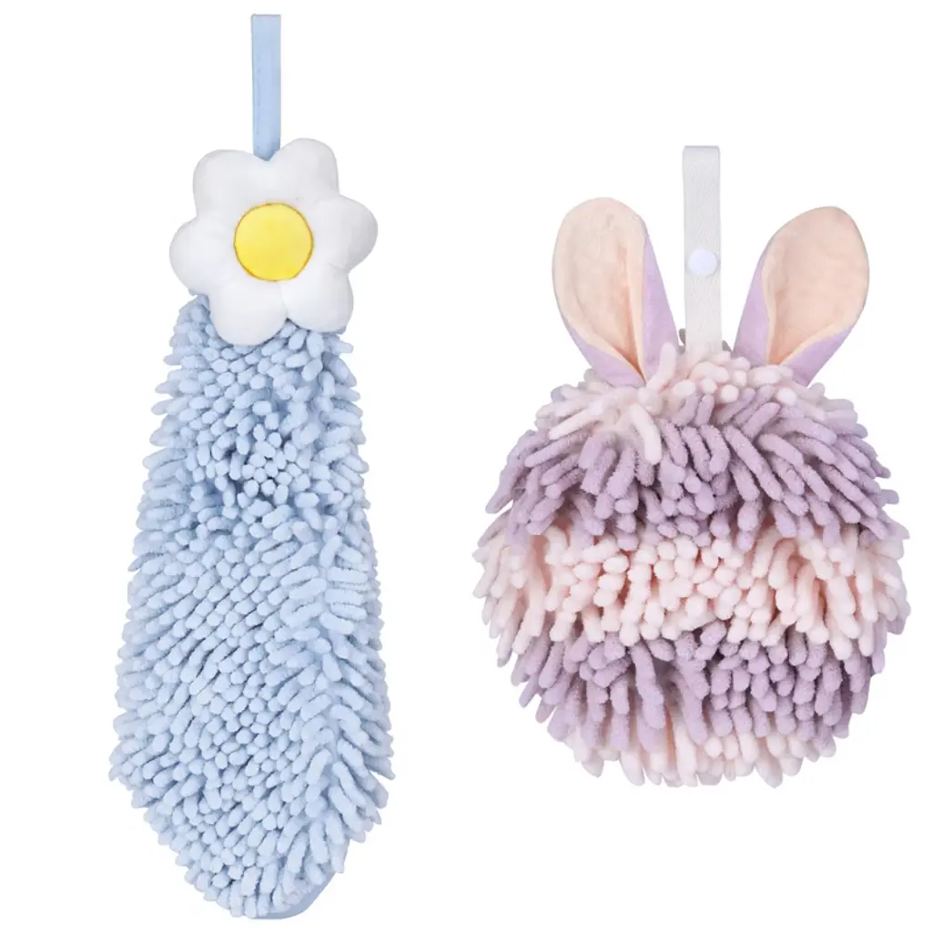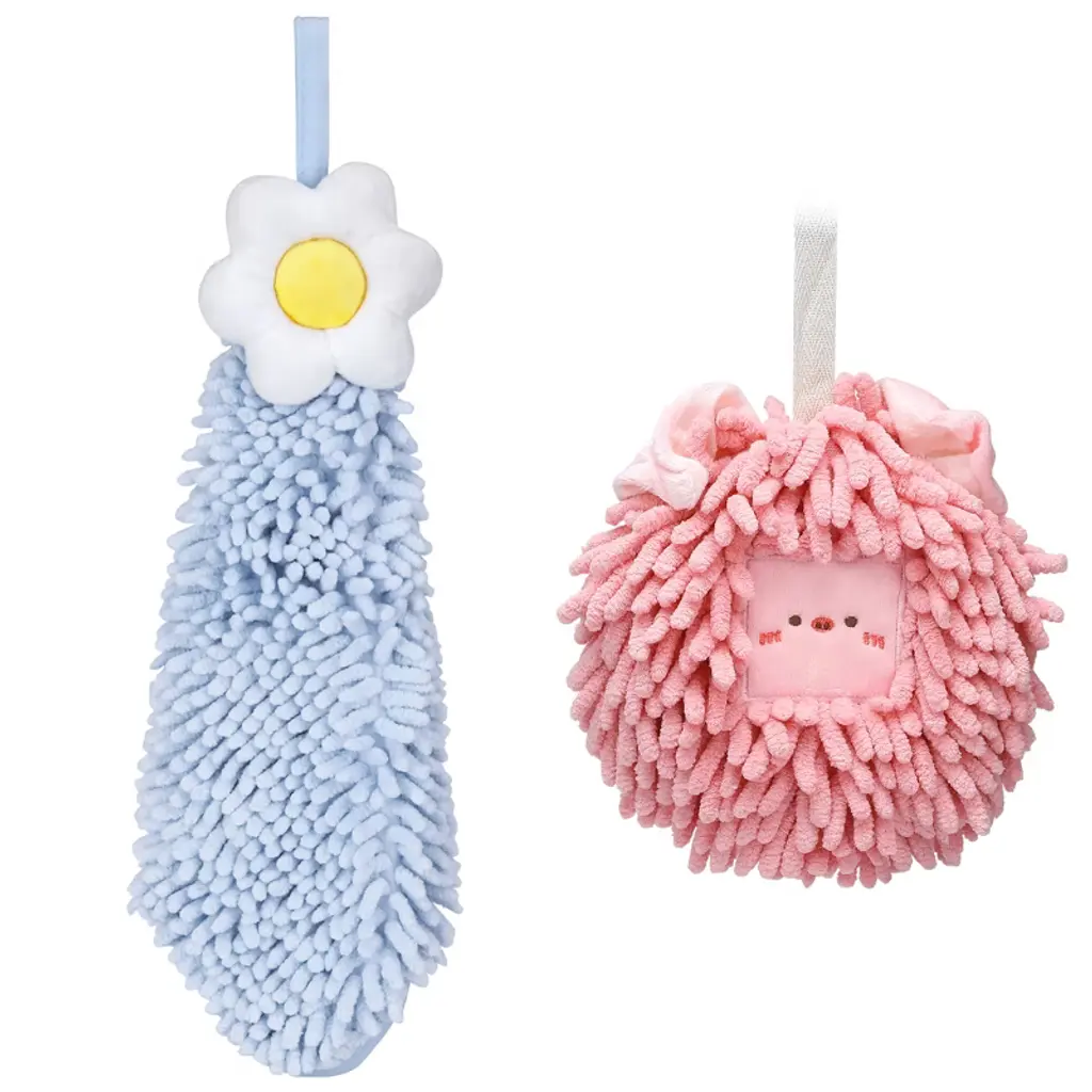 Cute Cartoon Fuzzy Ball Hand Towels, Soft And Quick Dry Decorative Hanging Hand Towel Set For Bathroom, Kitchen, Toilet - Pink - 4 Pack