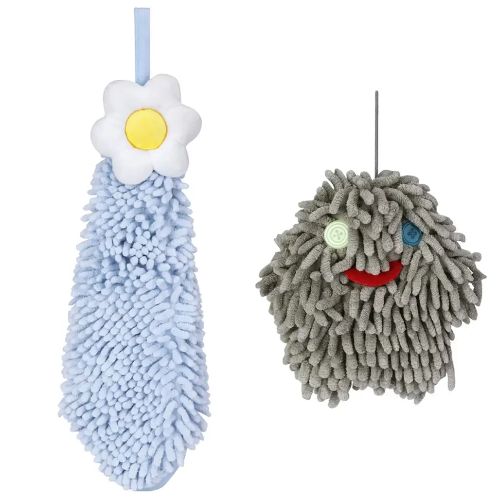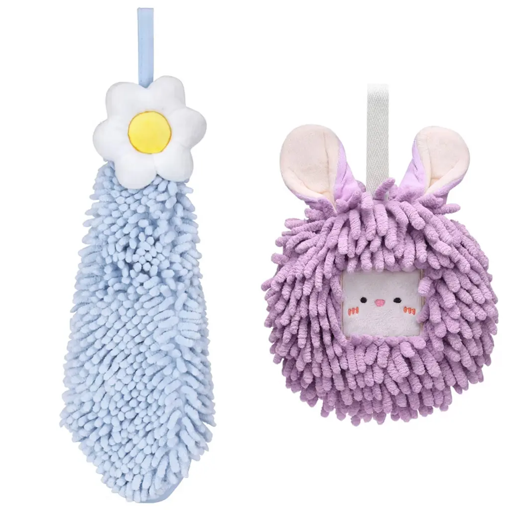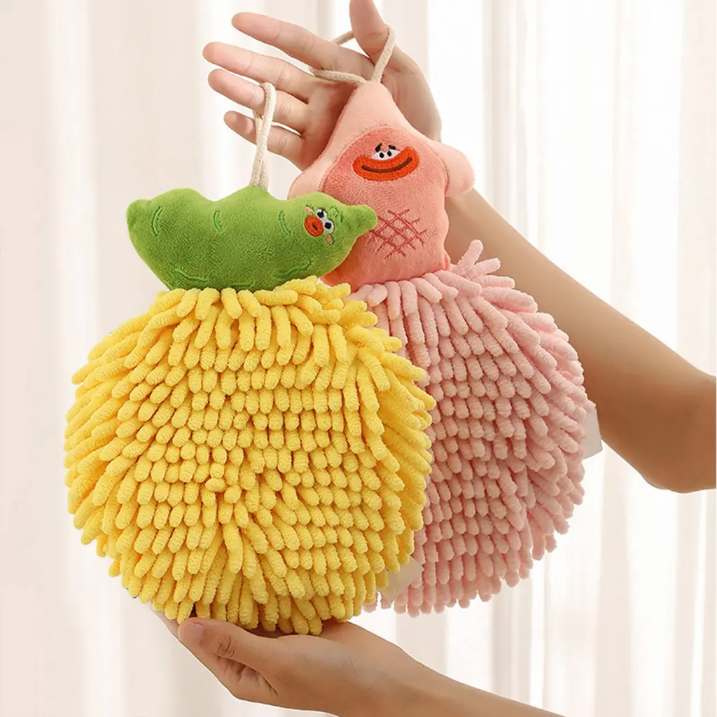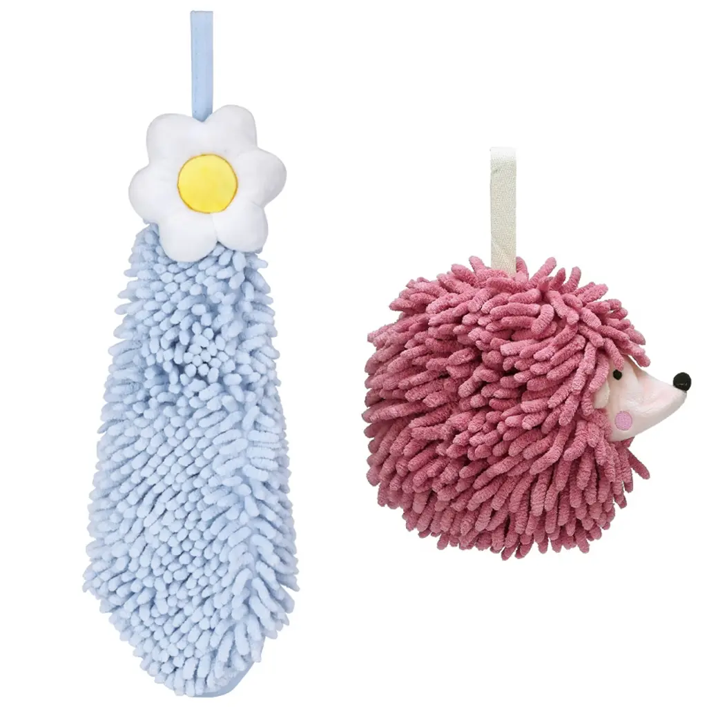 Cute Cartoon Fuzzy Ball Hand Towels, Soft And Quick Dry Decorative Hanging Hand Towel Set For Bathroom, Kitchen, Toilet - Pink - 4 Pack