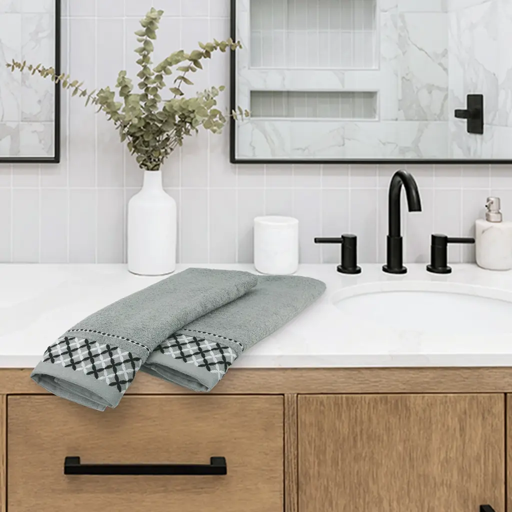 Cute Pattern Decorative Hand Towel Set, Lightweight, Absorbent Bathroom Hand Towels 14 X 30 Inches - Grey - 2 Pack