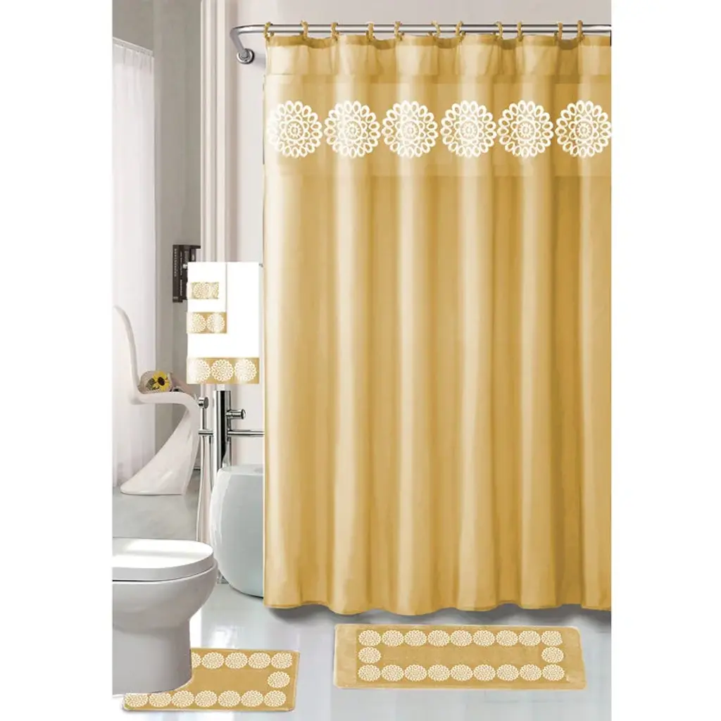 Indulge in the ultimate luxury and comfort with the Cynthia 18 Piece Shower Curtain Set. Crafted from the finest materials, this exquisite set offers a luxuriously soft and plush feel. The beautiful aboriginal pattern, embossed into the fabric, adds a touch of exotic elegance and sophistication to your bathroom, creating a spa-like atmosphere. With its extra-large size and non-slip backing, the Cynthia Shower Curtain Set ensures a safe and comfortable bathing experience. This comprehensive set includes 18 pieces, providing ample coverage for your entire bathroom, including shower curtains, bath mats, and towels. Experience the epitome of luxury and style with the Cynthia 18 Piece Shower Curtain Set.Key Features:Upgrade your bathroom today! Order the Cynthia 18 Piece Shower Curtain Set now and experience the difference.Specs:Additional Details:Enhance your bathroom's comfort and style with the Cynthia 18 Piece Shower Curtain Set. Order yours today!