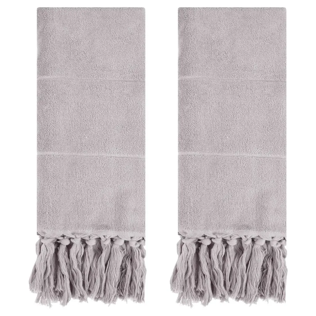 Decorative Turkish Hand Towels Set Of 2, Cotton Absorbent Soft Bath Towel Set For Bathroom, Kitchen, Face, Yoga, Gym - 14" X 30" - Grey