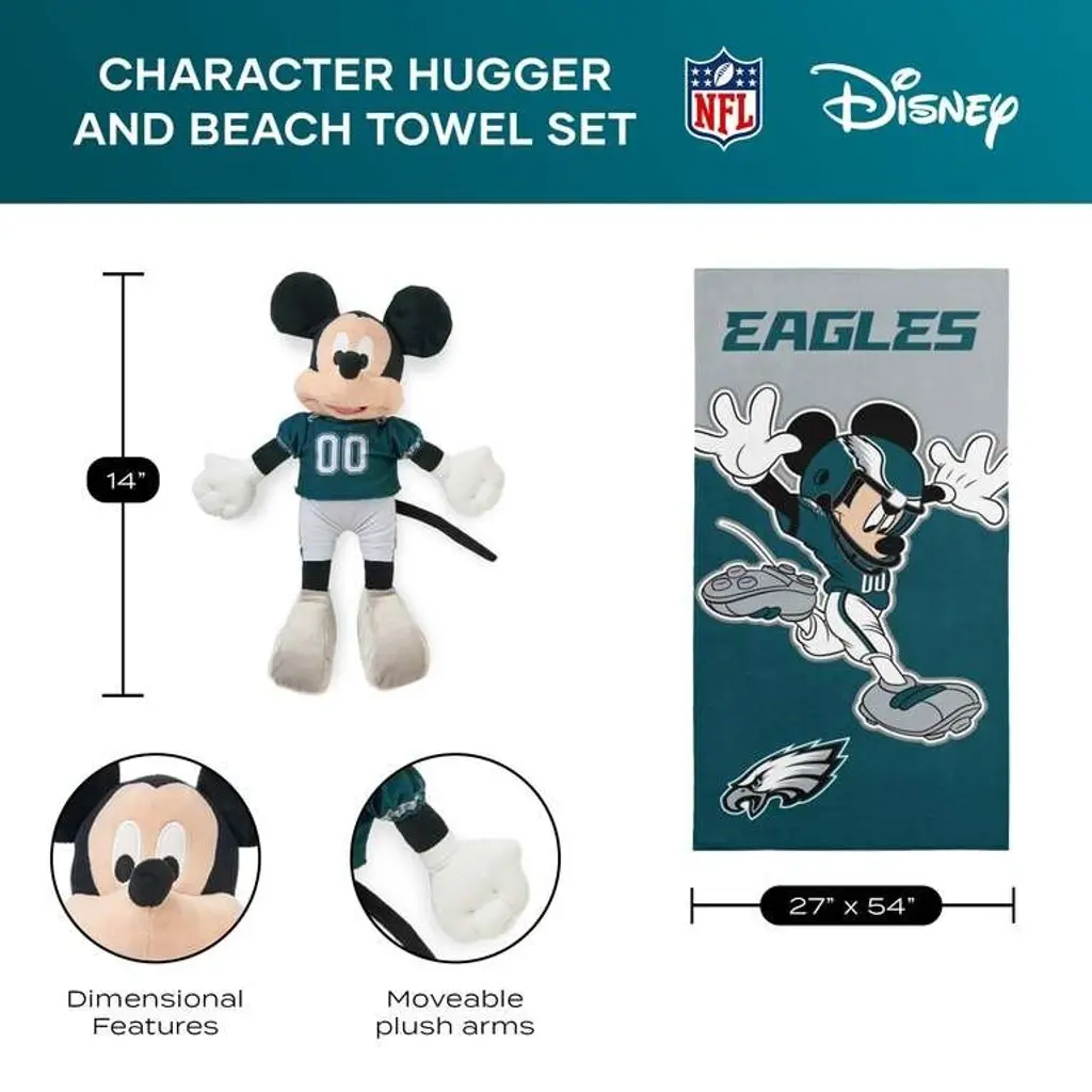 Disney Nfl Mickey Splash Hugger Beach Towel Set - 30" X 60" - Eagles