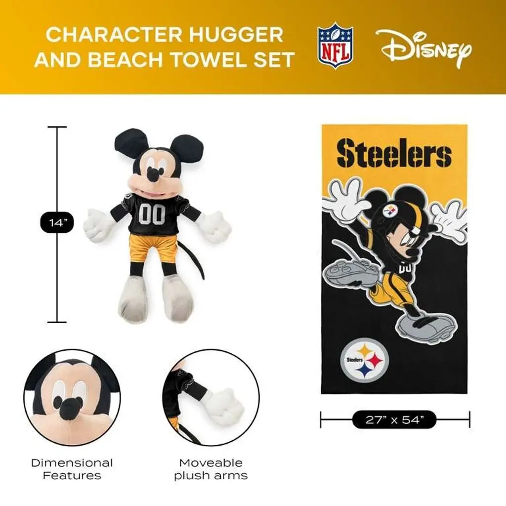 Disney Nfl Mickey Splash Hugger Beach Towel Set - 30" X 60" - Steelers