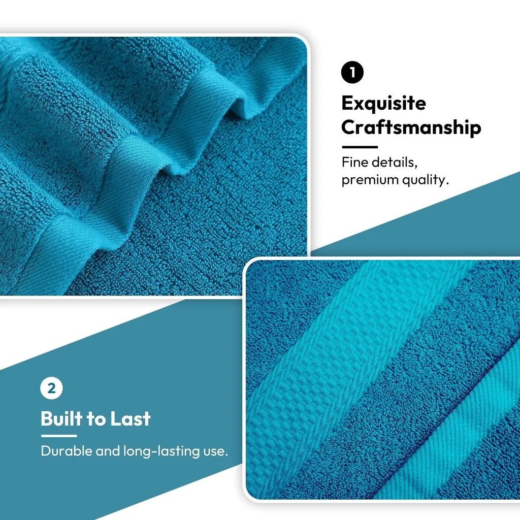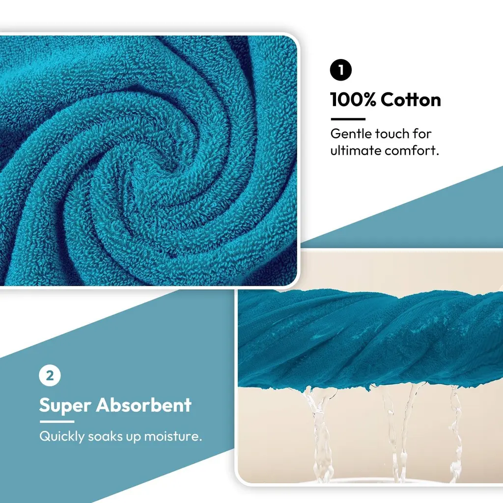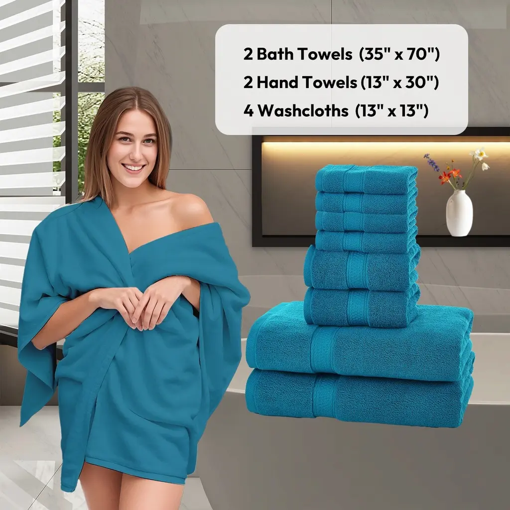Extra Large 8 Pieces Bath Towel Set, 100% Cotton Highly Absorbent Towels For Bathroom - Teal