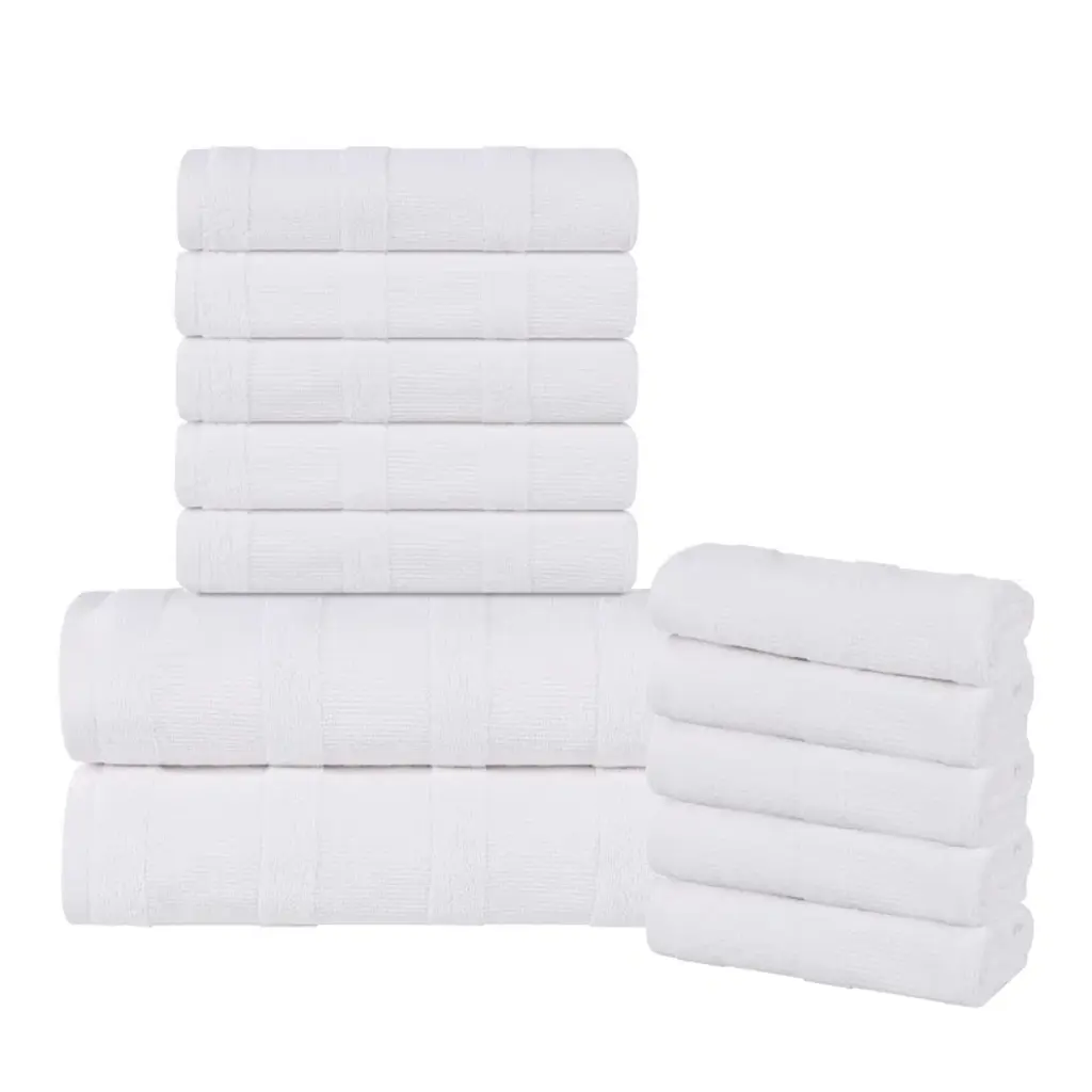 8 Pieces Include: 2 Bath Towels (27"X52") | 2 Hand Towels (16"X28") | 4 Face Towels (13"x13") High-Quality Construction: 100% Zero Twist Cotton, zero-twist construction uses longer and stronger cotton fibers, allowing them to be looped through the towel base instead of twisted out from the towel. Loops, instead of twists, give the towel three substantial benefits: Absorbency, Softness, Durability. While some towels labeled as "combed cotton" or "ringspun cotton" may feel soft upfront, they also refer to this twisted method and will not last as long. The fluffy and absorbent Towel Set is versatile and can easily complement your decor. Extraordinarily soft fabric boasts low twist cotton loops for a plush feel. The towel's generous size is perfect for laying out by the pool, beach, or bathroom use.