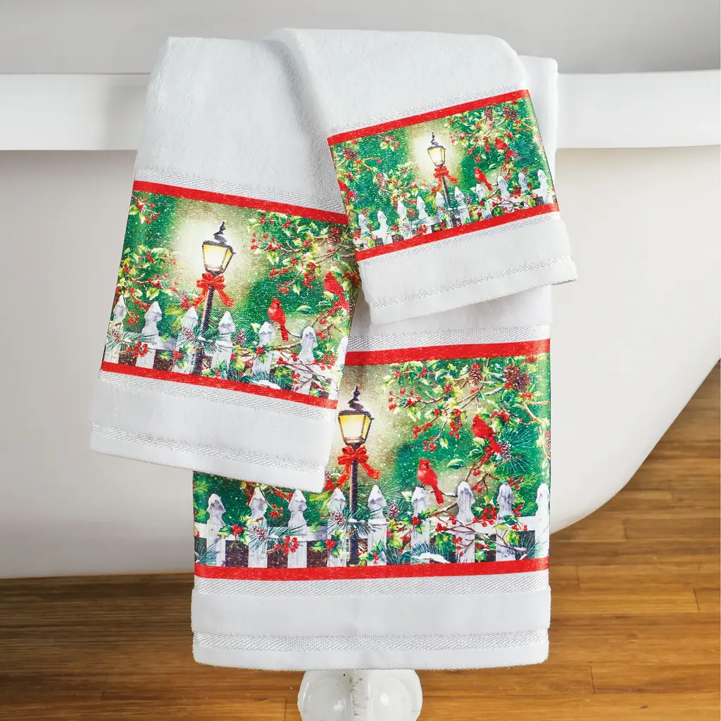 Frosted Cabin In The Woods Festive Scene 3-Piece Bath Towel Set - 9.000 X 6.000 X 2.880 - White - 9.000 X 6.000 X 2.880