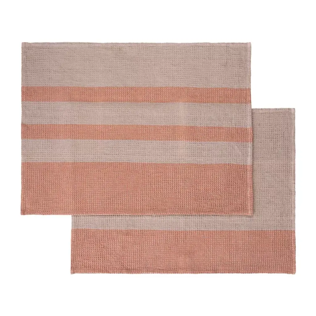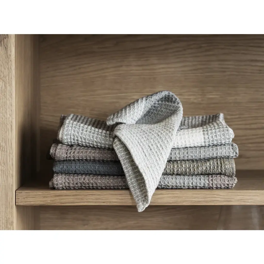 Gano organic cotton waffle tea towels: Set of 2 add a bit of luxury to the otherwise full daily routine of cleaning dishes. Designed by Frederike Martens, the block and stripe design is different for each piece in the set. Although your towel or dishcloth may not be the first items you consider for your kitchen makeover, well-designed, high-quality textiles may be just what you need to achieve perfection to the smallest detail. Towels are pre-washed to prevent shrinking.