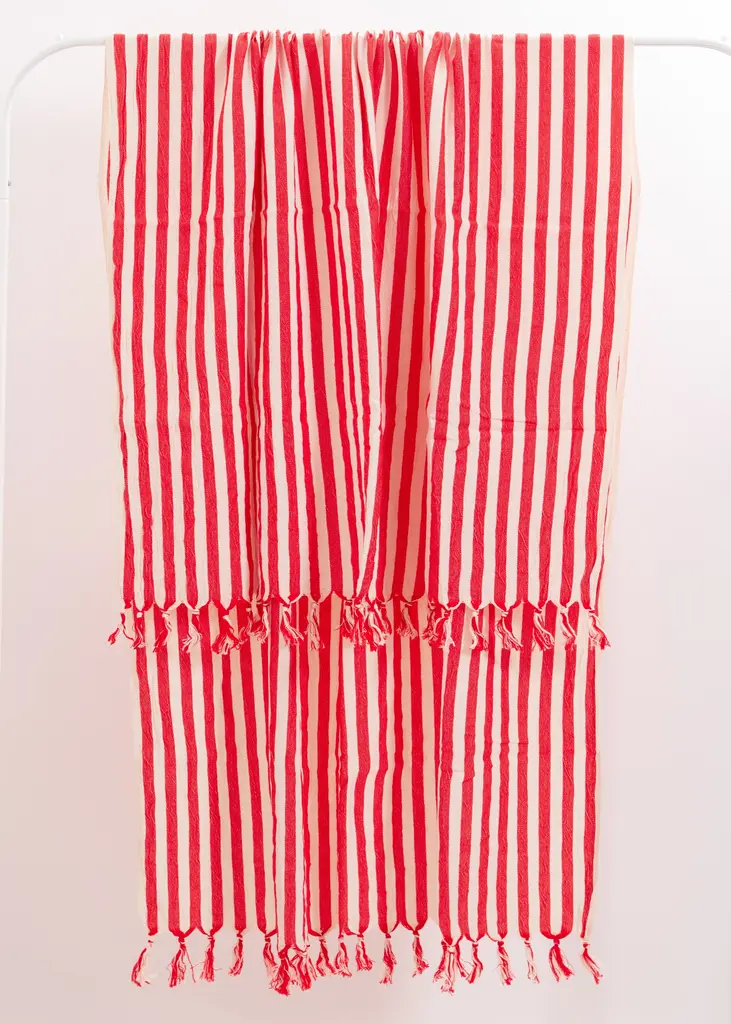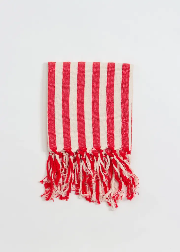 Introducing our Girit Red Towel, a stunning blend of elegance and functionality. Made on traditional semi-automatic looms in Turkey, this towel is crafted from sustainable fibers of cotton and linen. The unique combination of beige and red stripes creates a bold and striking look that is sure to elevate any bathroom or beach day. Not only is it stylish, but it's also incredibly absorbent and gets softer with every wash. Perfect for heavy usage, this towel is multi-functional and can also be used as a beach wrap, picnic blanket, or tablecloth. Upgrade your towel game with the Girit Red Towel and enjoy its beauty and practicality for years to come.