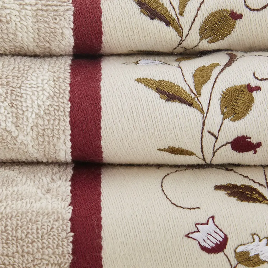 Gracie Mills Rogelio 6-piece Floral Embroidered Cotton Jacquard Towel Set - Bath Towel - Red
