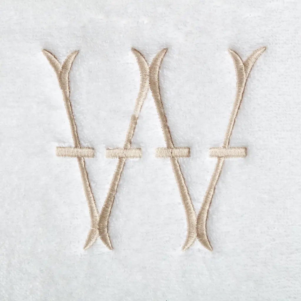 Exclusive to One Kings Lane: The bath towel, hand towel, and washcloth that make up this set are made of zero-twist long-staple cotton. As a result, not only are they wonderfully soft, but they are also especially absorbent, dry quickly, and will outlast other towels. As if that doesn't make this set special enough, the bath towel and the hand towel can be monogrammed in sand-color thread with the initial of your choice, rendered in a distinctive type style.