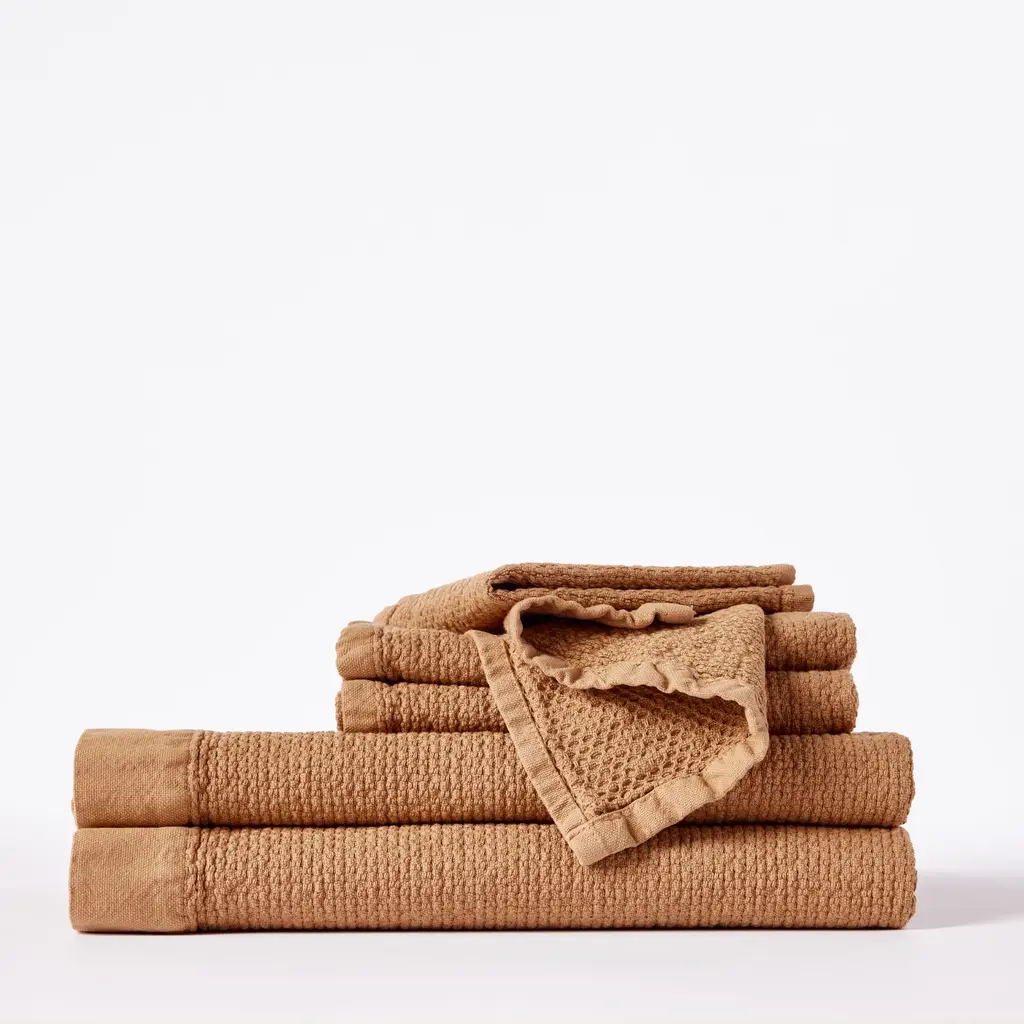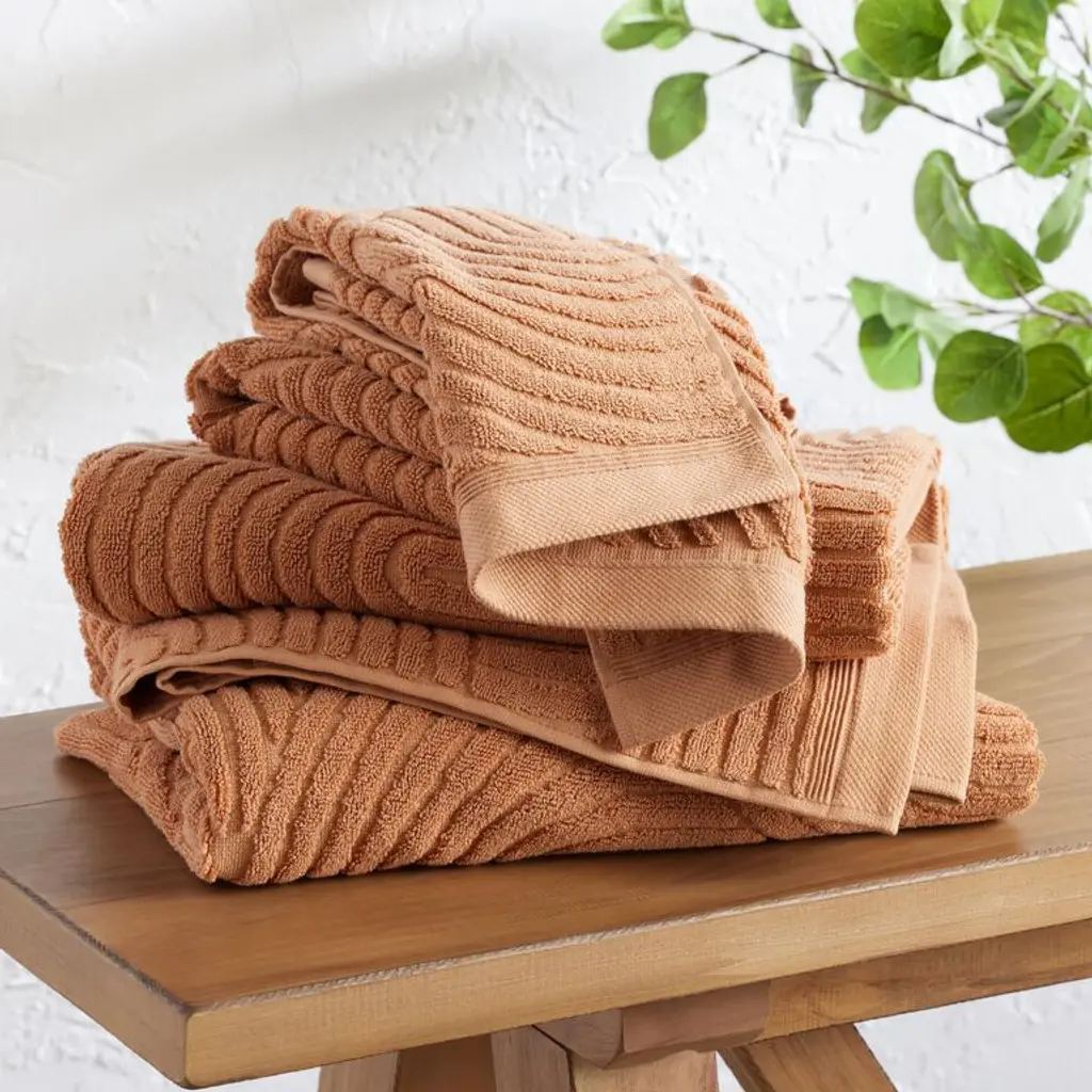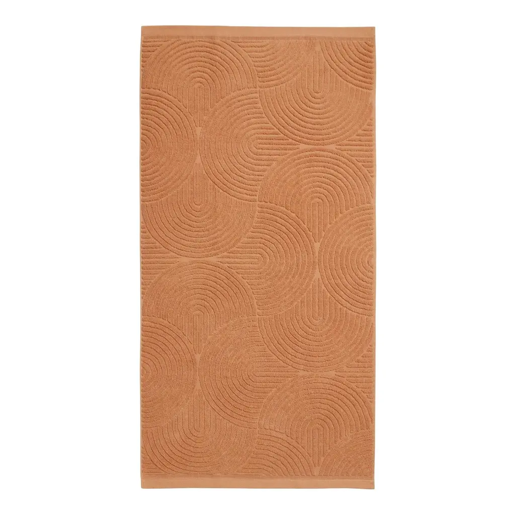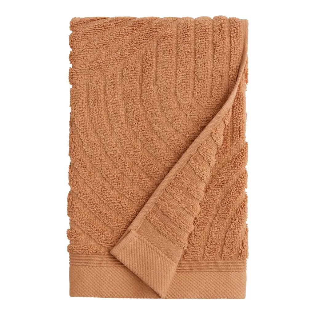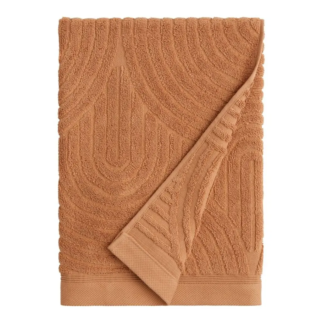 Our '70s-inspired cotton towel collection adds a soft dimensional design element to your bathroom. A cool, casual decor update, these hand and bath towels feature a retro sculpted arch pattern and rich hazel brown color.