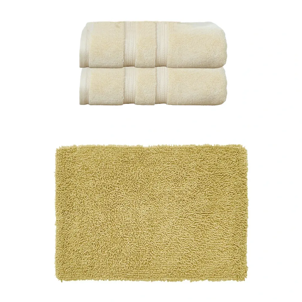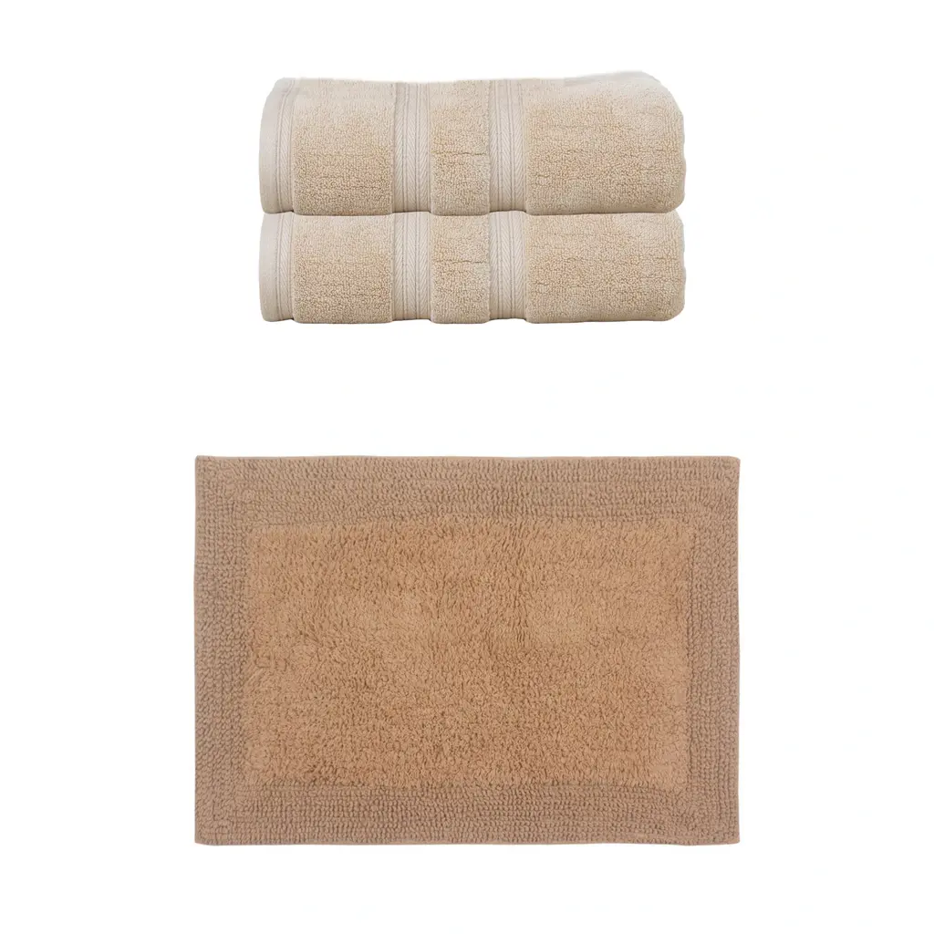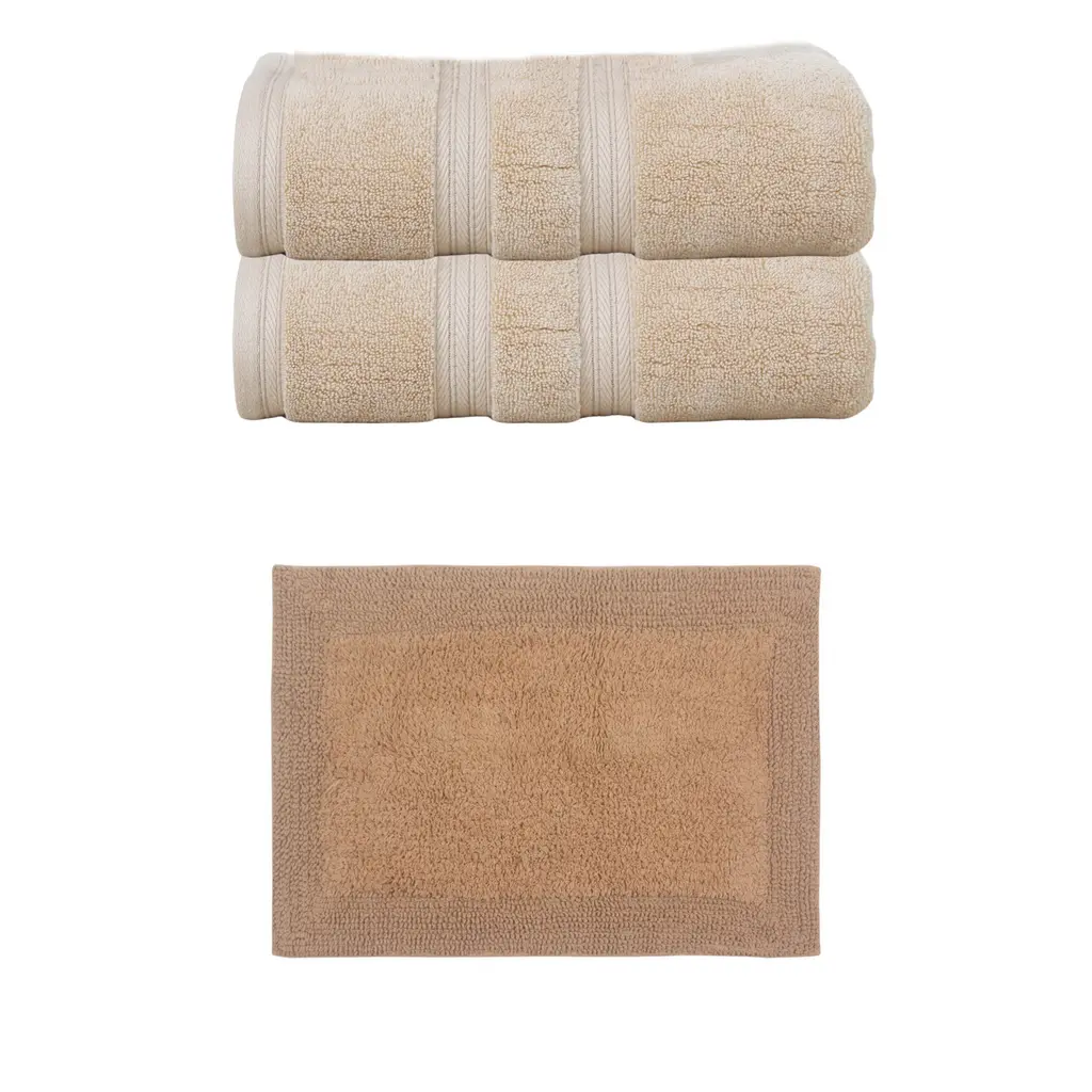Home Weavers Classy Bath Mat 100% Soft Cotton 2 Pc Bath Towel Set & 1 Pc Bath Rug, Machine Washable & Non Slip (Set Of 3) - Linen - 24"x40" + 27"x54"(2)