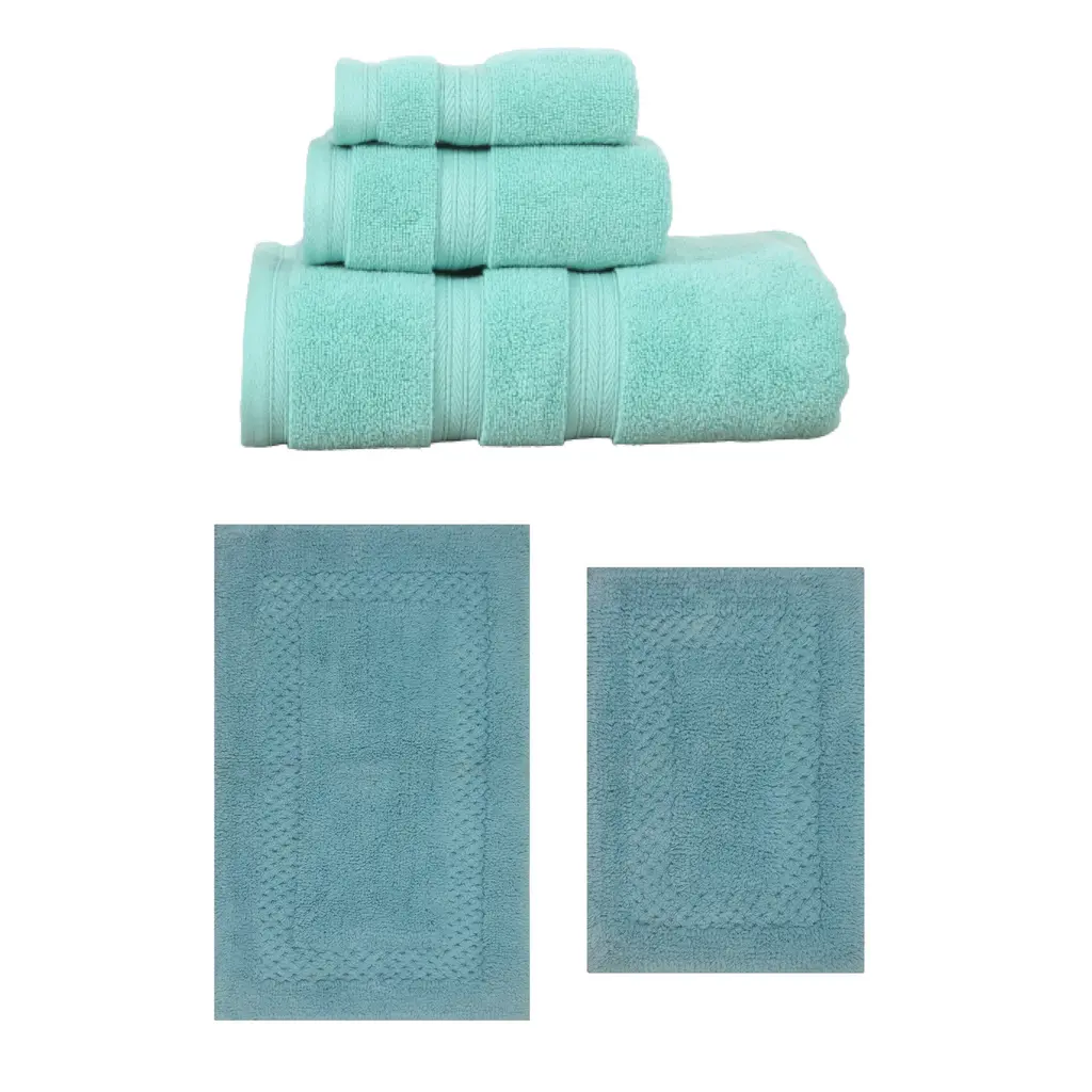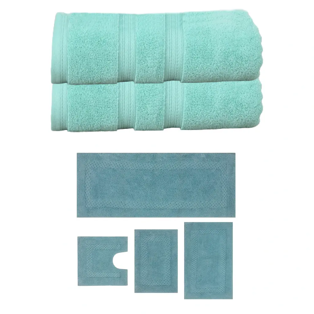 Home Weavers Classy Bath Mat 100% Soft Cotton 6 Pc Towel Set & 1 Pc Bath Rug, Machine Washable & Non Slip (Set Of 7) - Turquoise - 24"x40" + 27"x54"(2) + 16"x24"(2) + 13"x13"(2)