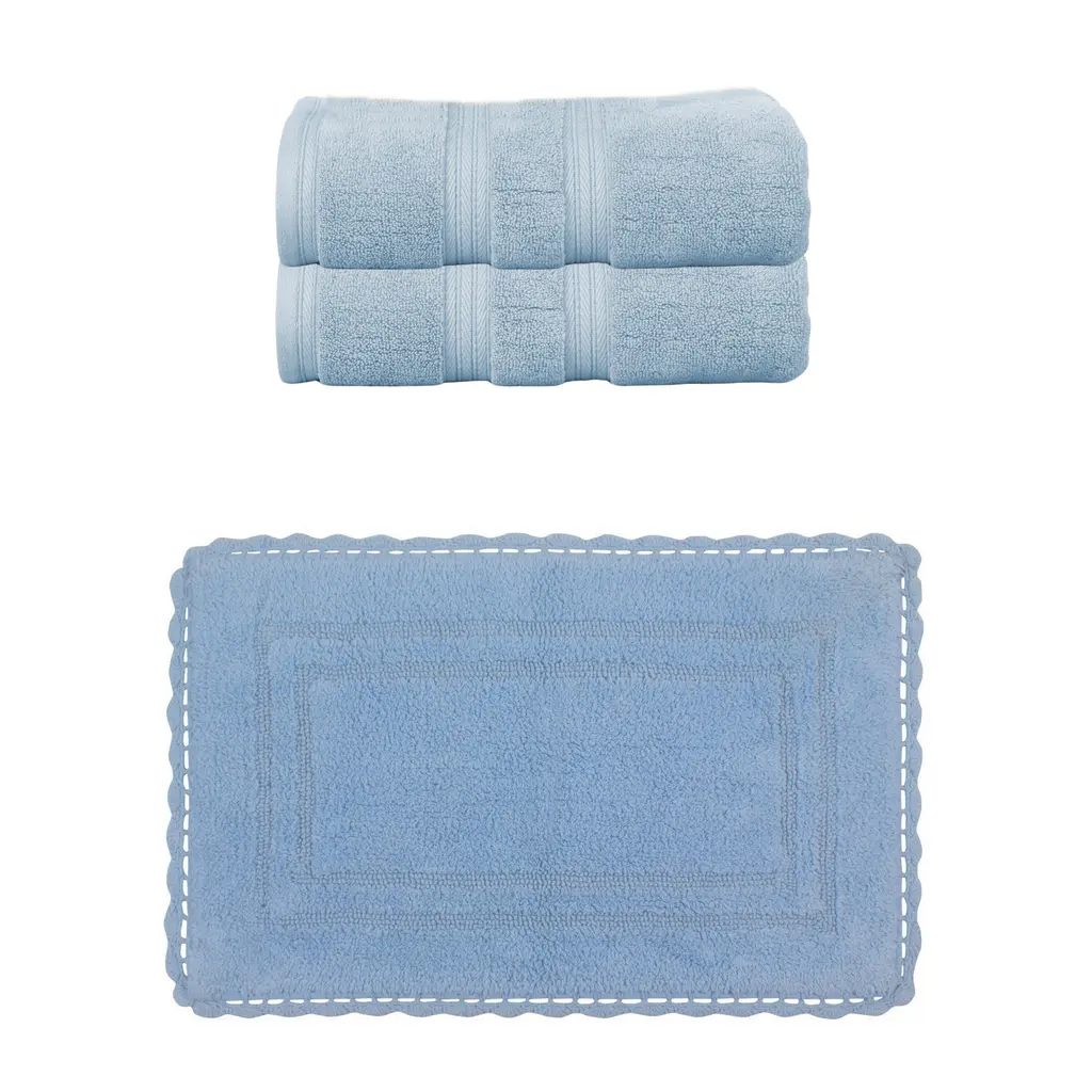 Home Weavers Classy Bath Mat 100% Soft Cotton Super Absorbent 2 Pcs Bath Towel Set & 4 Pc Bath Rug Set, Machine Wash (Set Of 6) - Blue - 4 Pc Bath Rug + 2 Pc Bath Towel Set