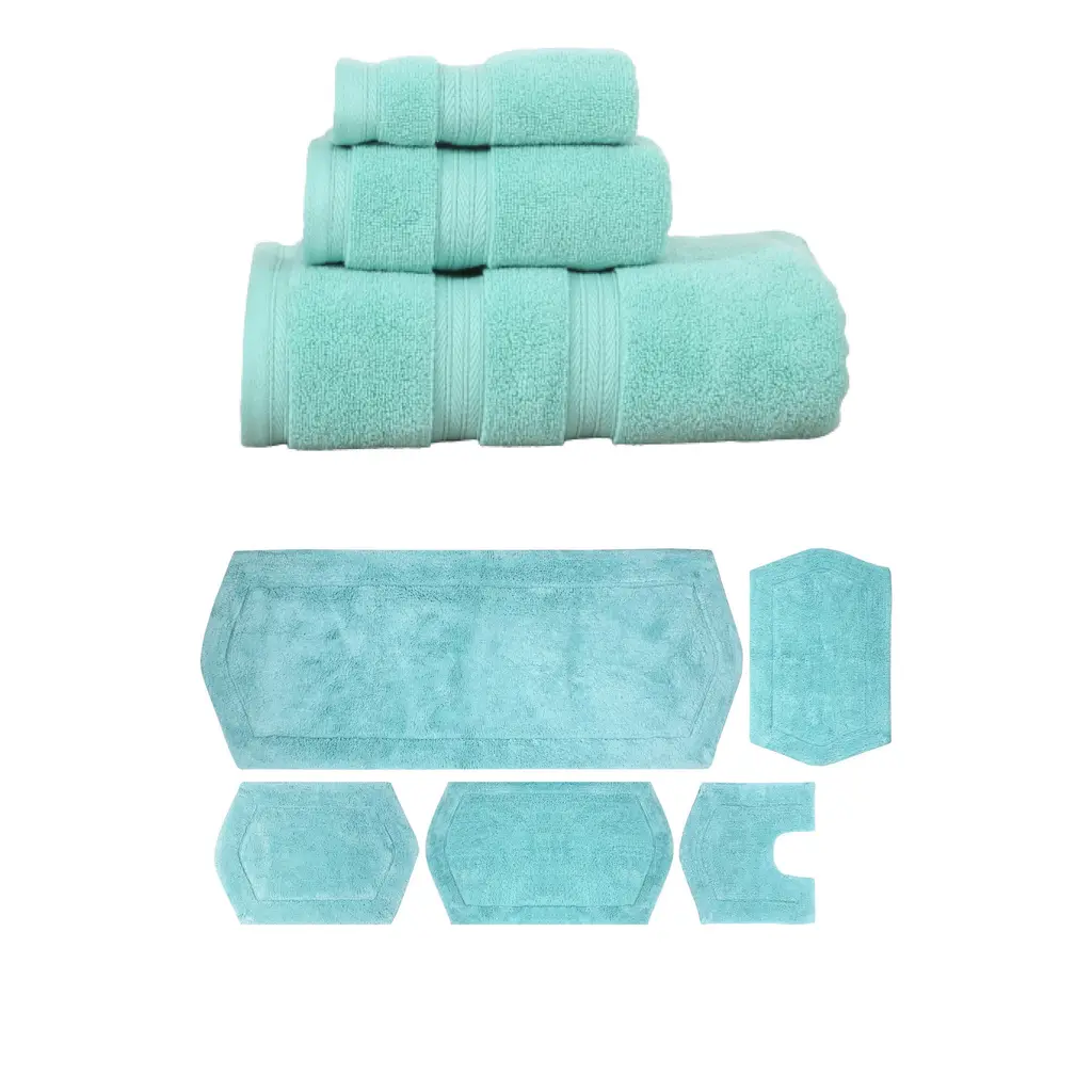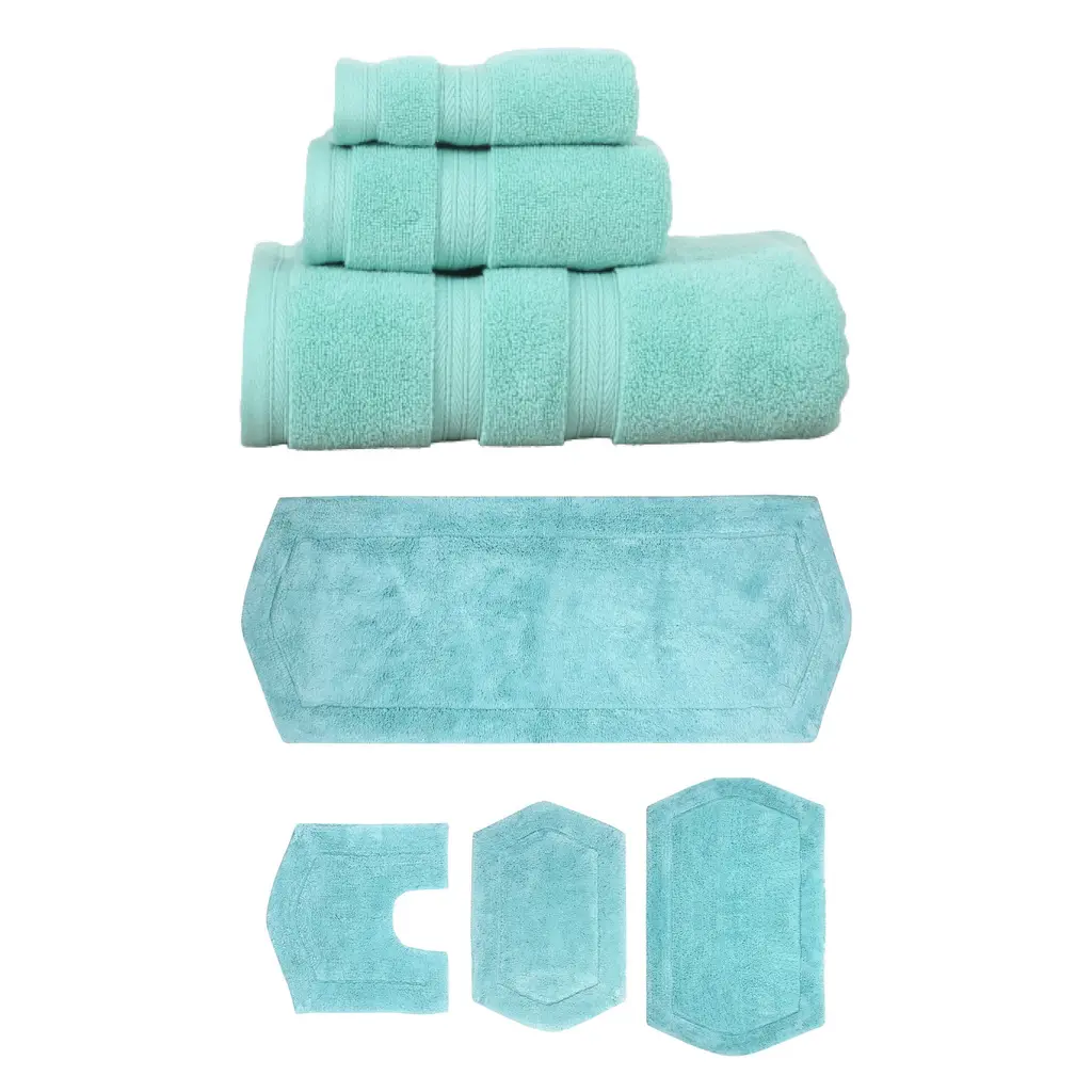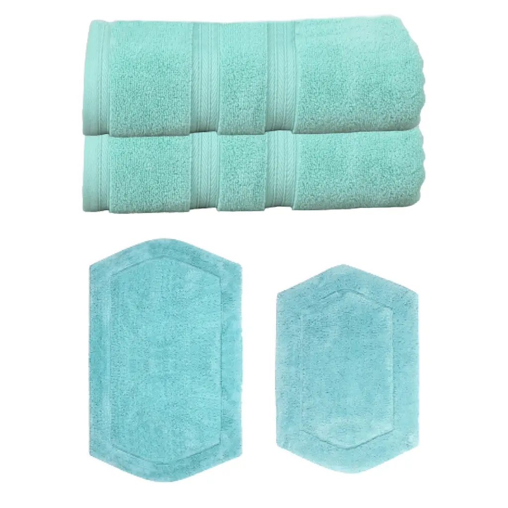 Home Weavers Classy Bath Mat 100% Soft Cotton Super Absorbent 2 Pcs Bath Towel Set & 4 Pc Bath Rug Set, Machine Wash (Set Of 6) - Turquoise - 4 Pc Bath Rug + 2 Pc Bath Towel Set
