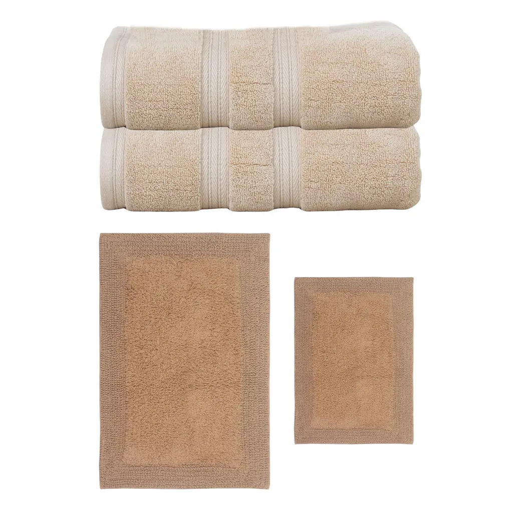 Home Weavers Classy Bath Mat 100% Soft Cotton Super Absorbent 3 Pcs Towel Set & 4 Pc Bath Rug Set, Machine Wash (Set Of 7) - Linen - 4 Pc Bath Rug + 3 Pc Towel Set