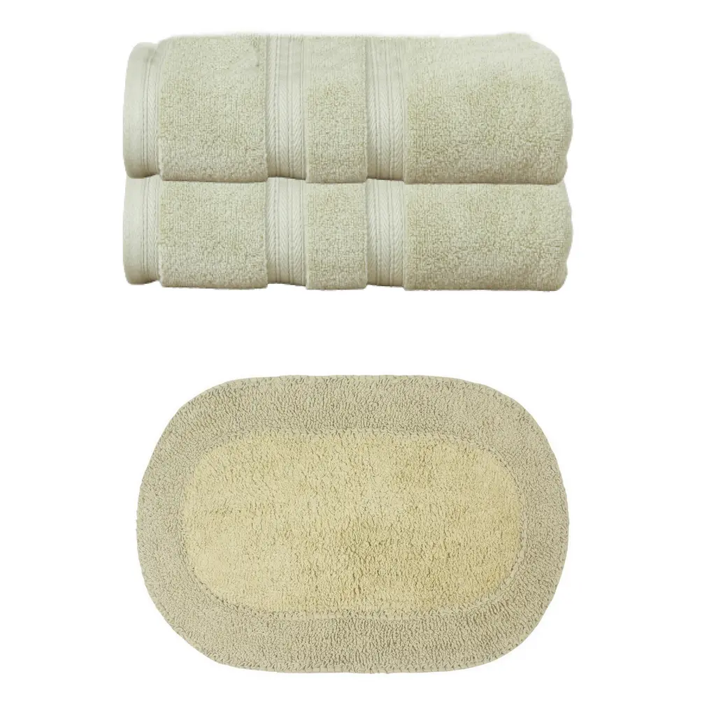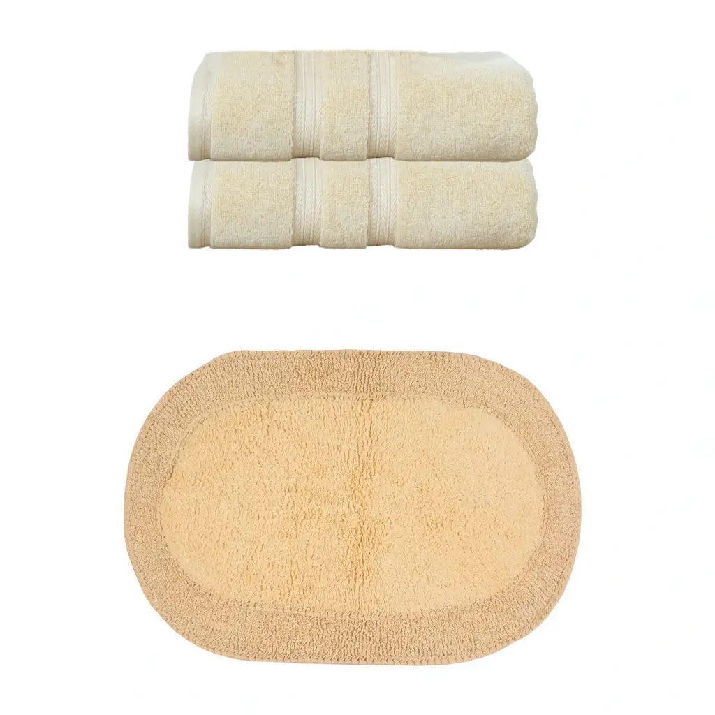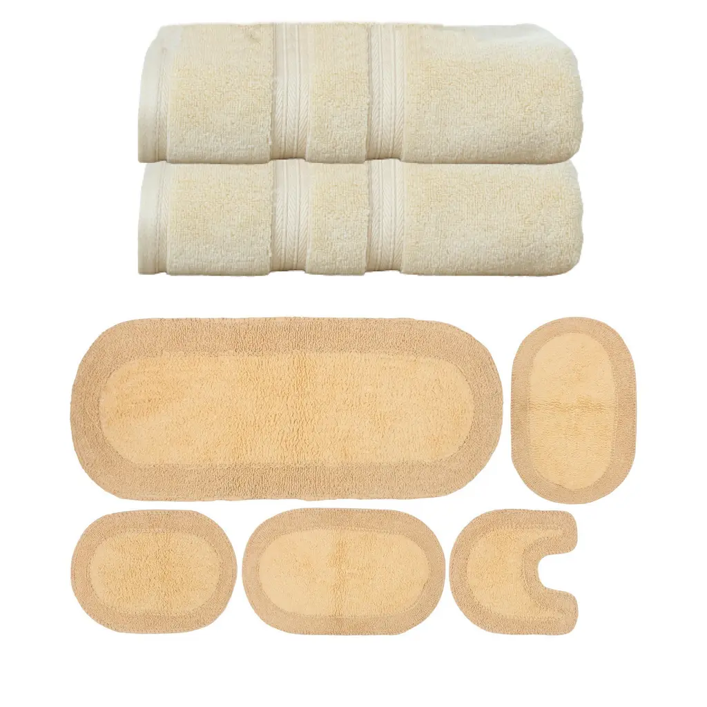 Transform Your Bath Experience with Home Weavers Double Ruffle Collection Bath Rug and Elegance Essential Towel Set Upgrade your bathroom with the luxurious Home Weavers Double Ruffle Collection, featuring a 100% cotton tufted bath rug and the Elegance Essential towel set. Home Weavers Double Ruffle Collection Bath Rug (24"x40") Crafted from 100% cotton, this tufted bath rug combines plush comfort with durability. Its absorbent construction ensures quick drying, while the tufted texture provides a soft cushion underfoot. Available in a range of elegant colors to complement any bathroom décor. Elegance Essential Towel 2 Pcs Set (27"x54") Wrap yourself in luxury with the Elegance Essential towel set, made from high-quality cotton for exceptional softness and absorbency. This set includes generously sized bath towels perfect for daily use. Available in classic colors that effortlessly elevate your bathroom style.