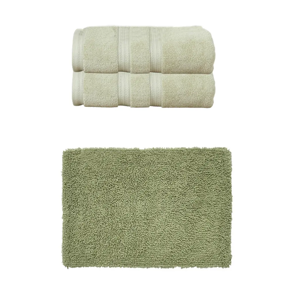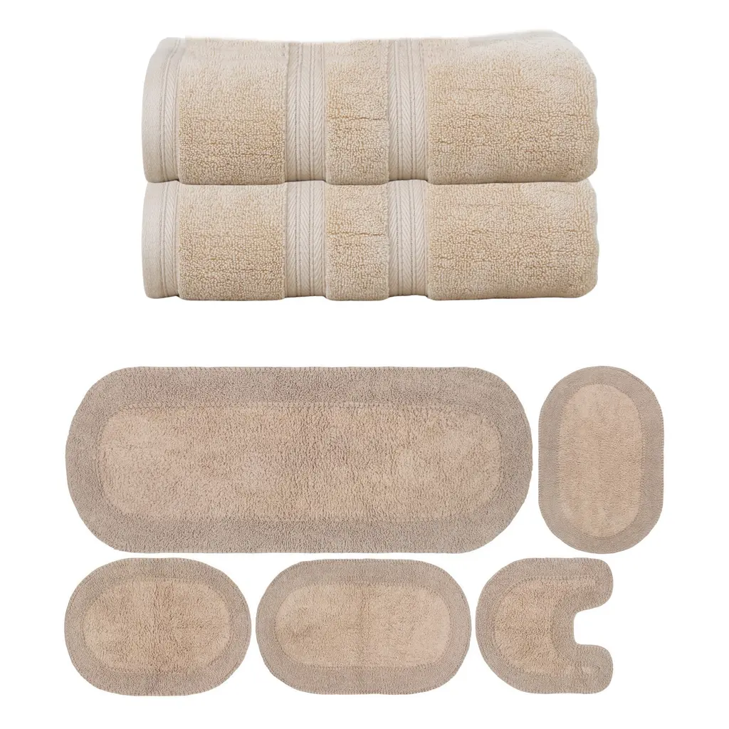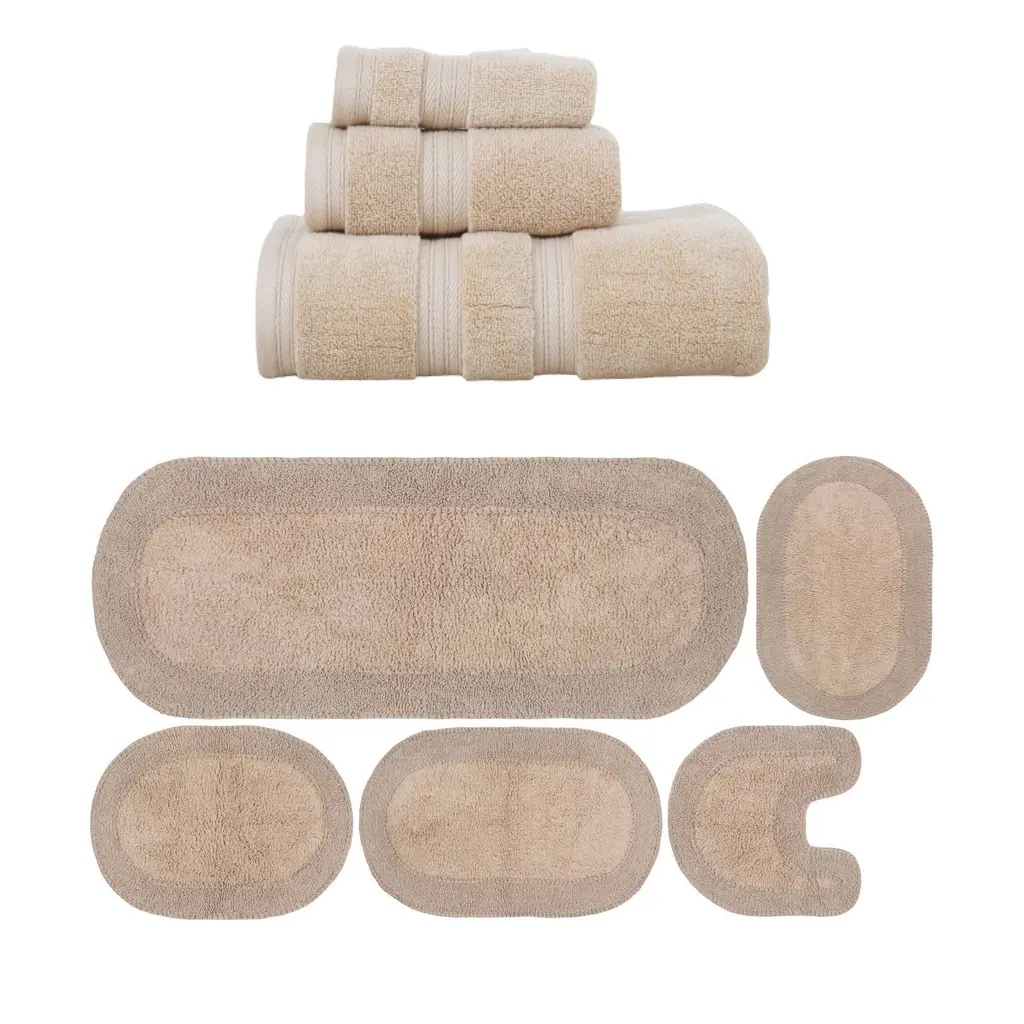 Transform Your Bath Experience with Home Weavers Double Ruffle Collection Bath Rug and Elegance Essential Towel Set Upgrade your bathroom with the luxurious Home Weavers Double Ruffle Collection, featuring a 100% cotton tufted bath rug and the Elegance Essential towel set. Home Weavers Double Ruffle Collection Bath Rug (24"x40") Crafted from 100% cotton, this tufted bath rug combines plush comfort with durability. Its absorbent construction ensures quick drying, while the tufted texture provides a soft cushion underfoot. Available in a range of elegant colors to complement any bathroom décor. Elegance Essential Towel 2 Pcs Set (27"x54") Wrap yourself in luxury with the Elegance Essential towel set, made from high-quality cotton for exceptional softness and absorbency. This set includes generously sized bath towels perfect for daily use. Available in classic colors that effortlessly elevate your bathroom style.