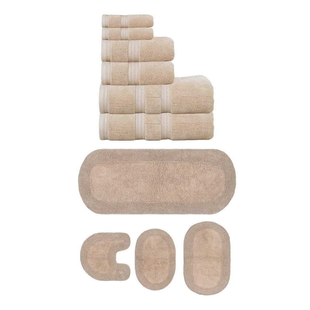 Transform your bathroom into a spa-like retreat with the Home Weavers Double Ruffle Collection. Crafted from 100% cotton, this luxurious bath set combines comfort and elegance to elevate your daily routine. The tufted bath rug, measuring 24"x40", offers plush softness underfoot while absorbing moisture efficiently. Pair it with our Elegance Essential bath towel (27"x54"), hand towel (16"x24"), and washcloth (13"x13") for a coordinated look that enhances any bathroom decor. Treat yourself to the ultimate in comfort and style with the Home Weavers Double Ruffle Collection, where quality meets sophistication. This Seven Piece set Includes :- 1 Piece Bath Rug + 6 pcs Towel Set (2 Bath Towel, 2 Hand Towel, 2 Wash Cloth)