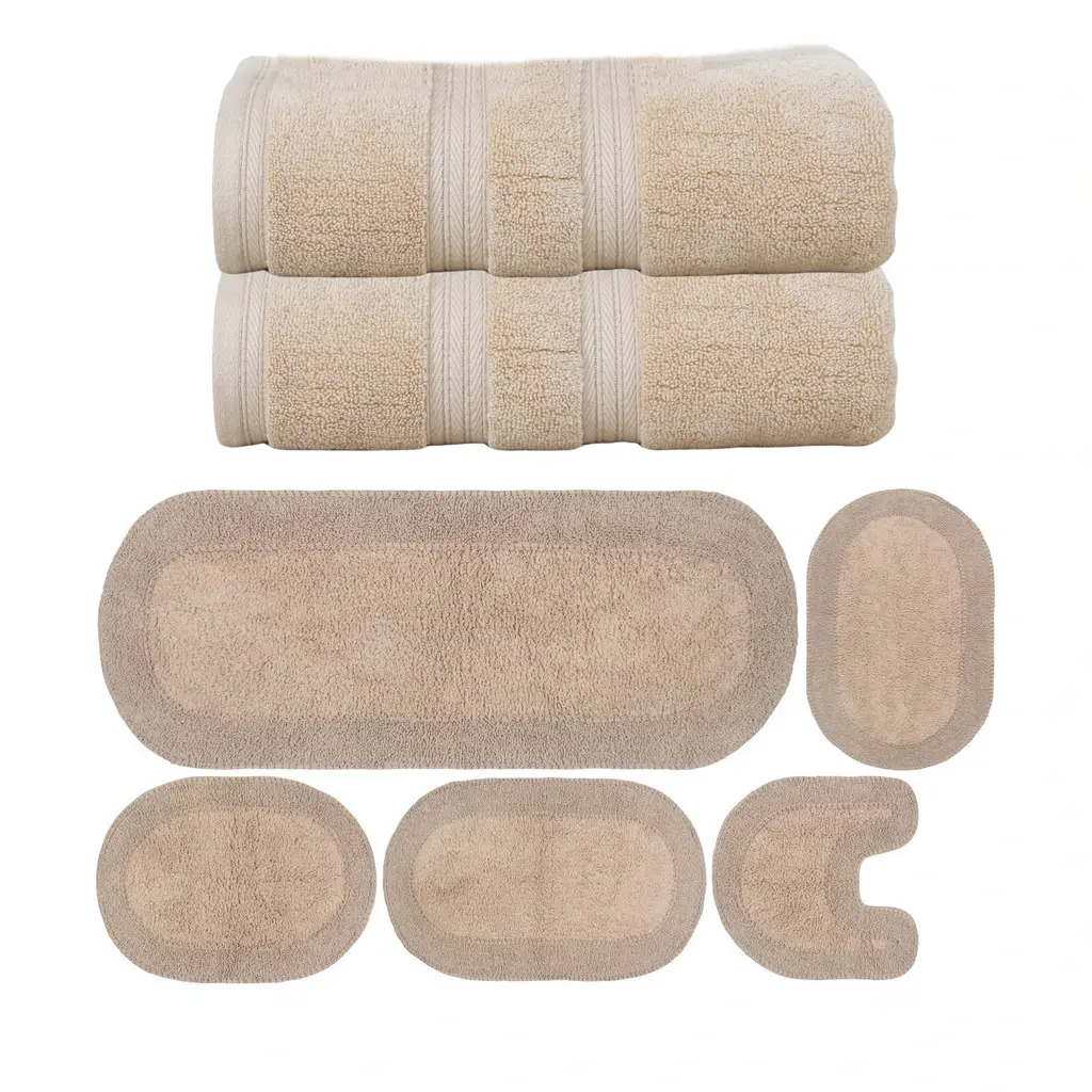 Transform your bathroom into a spa-like sanctuary with the Home Weavers 100% Soft Cotton Super Absorbent Bath Towels & Rugs Combo. Made from luxurious zero-twist cotton, these towels and rugs offer unmatched softness and absorbency while being gentle on the skin. The set includes a range of sizes, from plush bath towels to coordinating rugs, all designed to enhance your bathing experience. Each rug features a non-slip backing for safety and convenience, ensuring they stay securely in place. Plus, their machine-washable design makes for effortless maintenance. Elevate your daily routine with this premium combo that combines comfort, durability, and style. Set included: 3 Bath Rug (17"x24" + 21"x34" + 20"+20"), 2 Bath Towels (27"x54") Premium Quality: Each piece is crafted with care using 100% cotton for superior comfort and durability. Elegant Design: Enhance your bathroom aesthetic with a choice of sophisticated colors and a tufted & Non Slip bath rug that adds texture and warmth. Practical Comfort: Enjoy the soft, plush feel of the bath rug and the absorbency of the towel set, designed to meet your daily bathing needs. Washing Instructions : Machine-washable design makes for effortless maintenance.