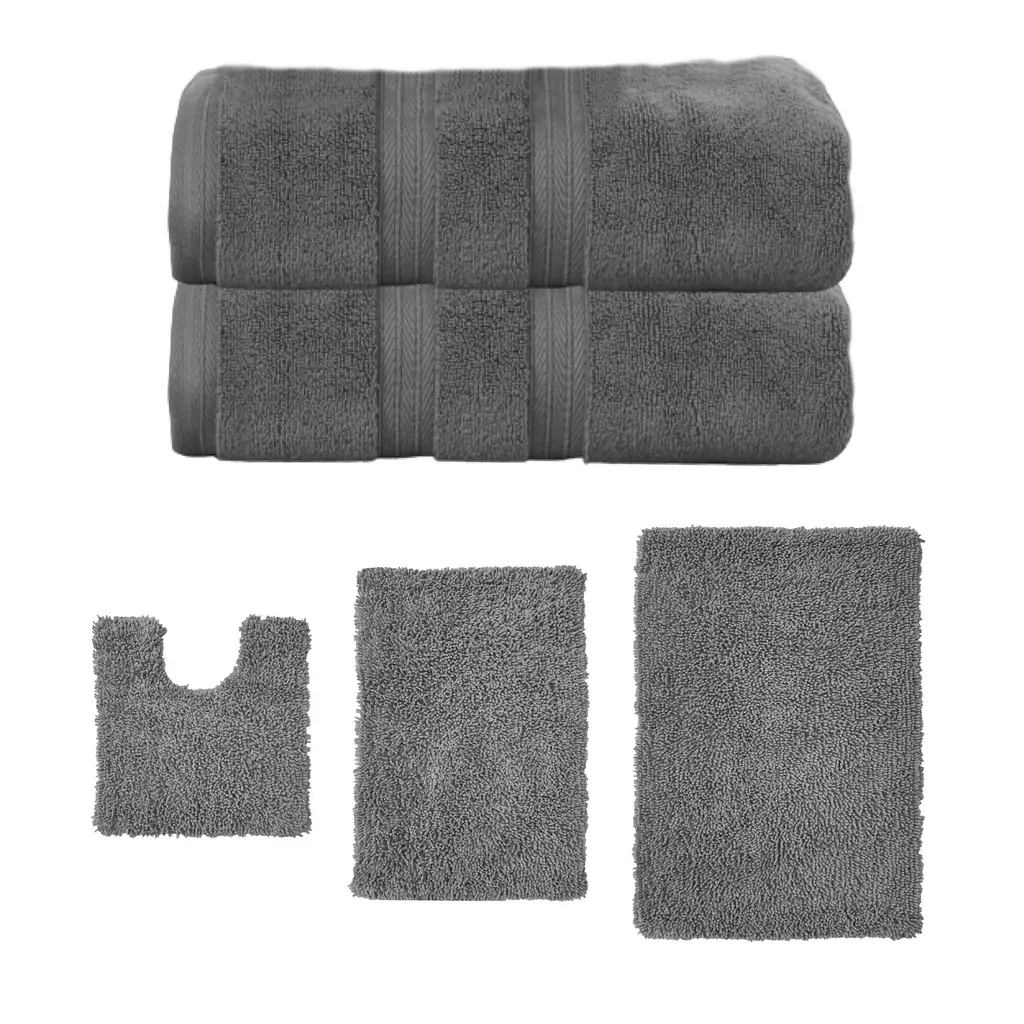 Transform your bathroom into a spa-like sanctuary with the Home Weavers 100% Soft Cotton Super Absorbent Bath Towels & Rugs Combo. Made from luxurious zero-twist cotton, these towels and rugs offer unmatched softness and absorbency while being gentle on the skin. The set includes a range of sizes, from plush bath towels to coordinating rugs, all designed to enhance your bathing experience. Each rug features a non-slip backing for safety and convenience, ensuring they stay securely in place. Plus, their machine-washable design makes for effortless maintenance. Elevate your daily routine with this premium combo that combines comfort, durability, and style. Set included: 3 Bath Rug (17"x24" + 21"x34" + 20"x20"), 1 Bath Towels (27"x54"), 1 Hand Towels (16"x24") and 1 Wash Cloths (13"x13") Premium Quality: Each piece is crafted with care using 100% cotton for superior comfort and durability. Elegant Design: Enhance your bathroom aesthetic with a choice of sophisticated colors and a tufted & Non Slip bath rug that adds texture and warmth. Practical Comfort: Enjoy the soft, plush feel of the bath rug and the absorbency of the towel set, designed to meet your daily bathing needs. Washing Instructions : Machine-washable design makes for effortless maintenance.