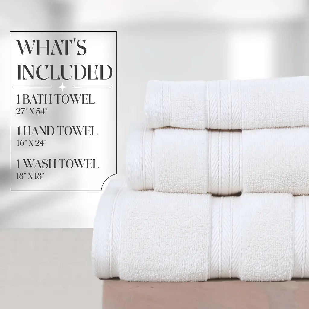 Home Weavers Elegance Essentials 550gsm Cotton Zero Twist Super Absorbent Bath Towel Set Of 3 - Ivory - 27"x54", 16"x24", 13"x13"