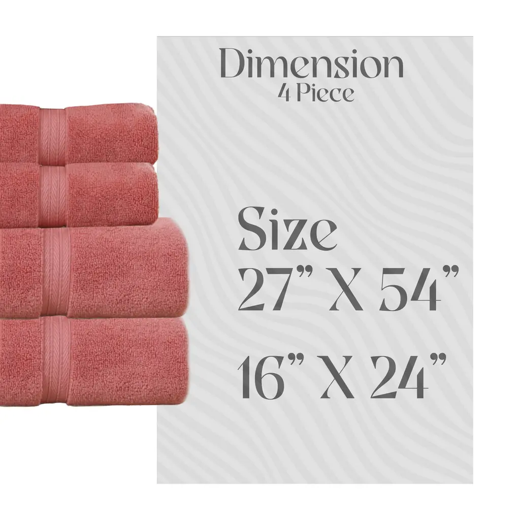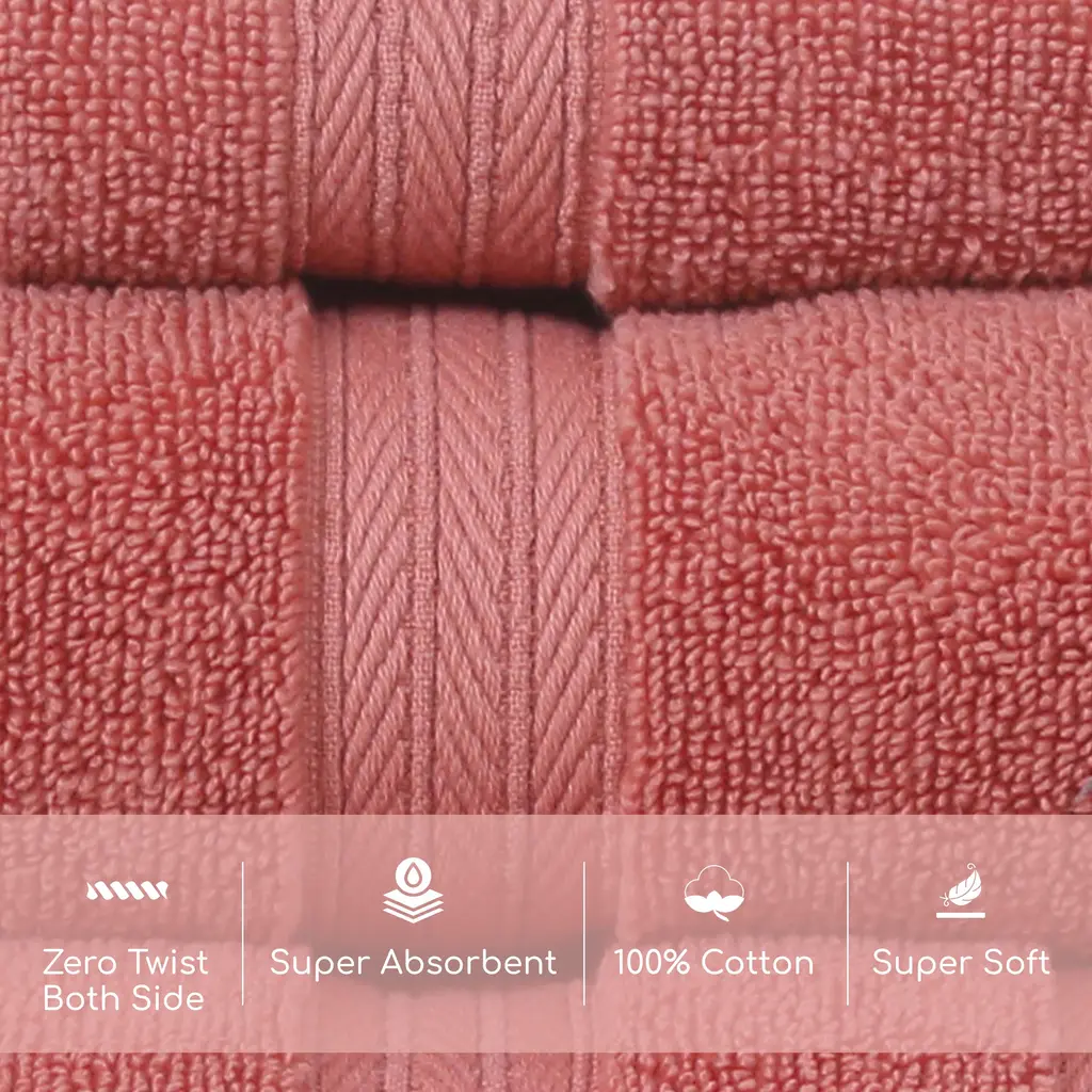 Home Weavers Elegance Essentials 550gsm Cotton Zero Twist Super Absorbent Bath Towel Set Of 4 - 27"x54", 16"x24" - Coral