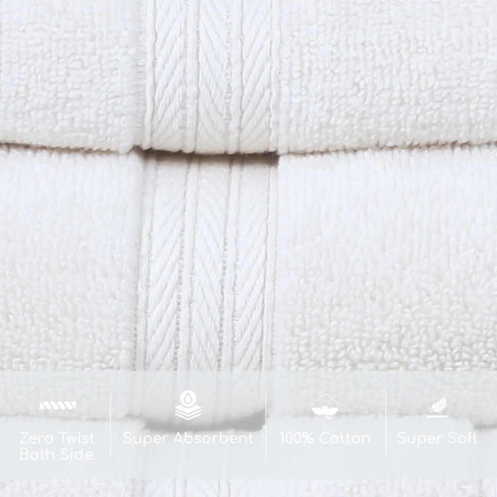 Home Weavers Elegance Essentials 550gsm Cotton Zero Twist Super Absorbent Bath Towel Set Of 4 - 27"x54", 16"x24" - White