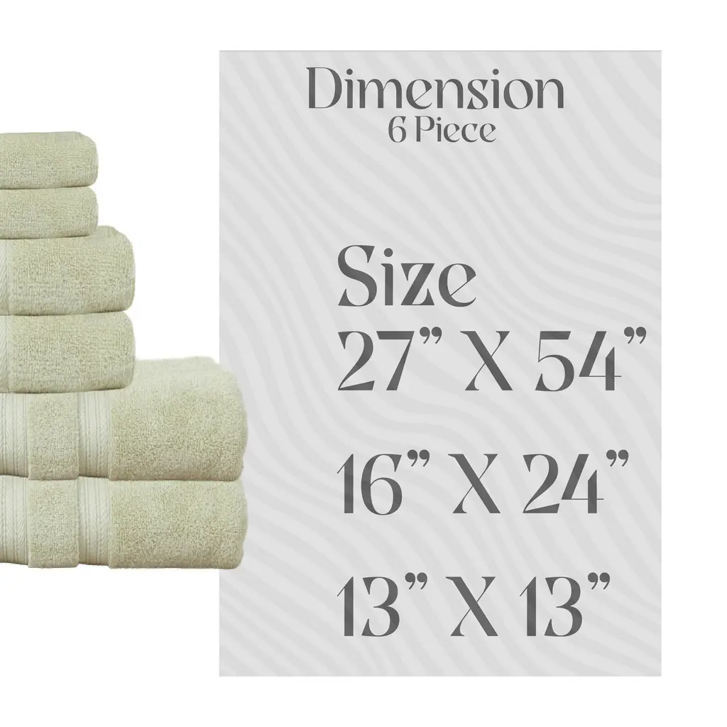 Home Weavers Elegance Essentials 550gsm Cotton Zero Twist Super Absorbent Bath Towel Set Of 6 - 27"x54", 16"x24", 13"x13" - Green