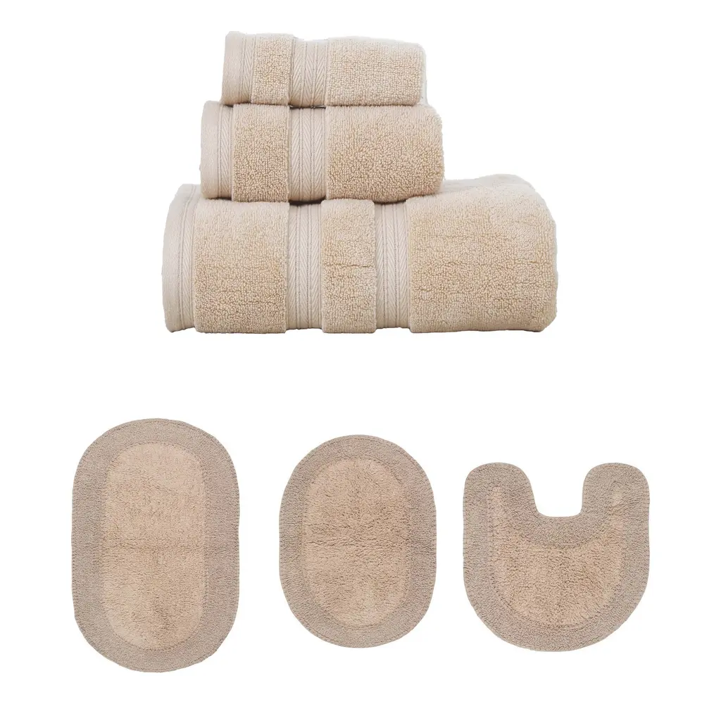 Home Weavers Elegance Essentials 550gsm Cotton Zero Twist Super Absorbent Bath Towel Set Of 6 - 27"x54", 16"x24", 13"x13" - Linen